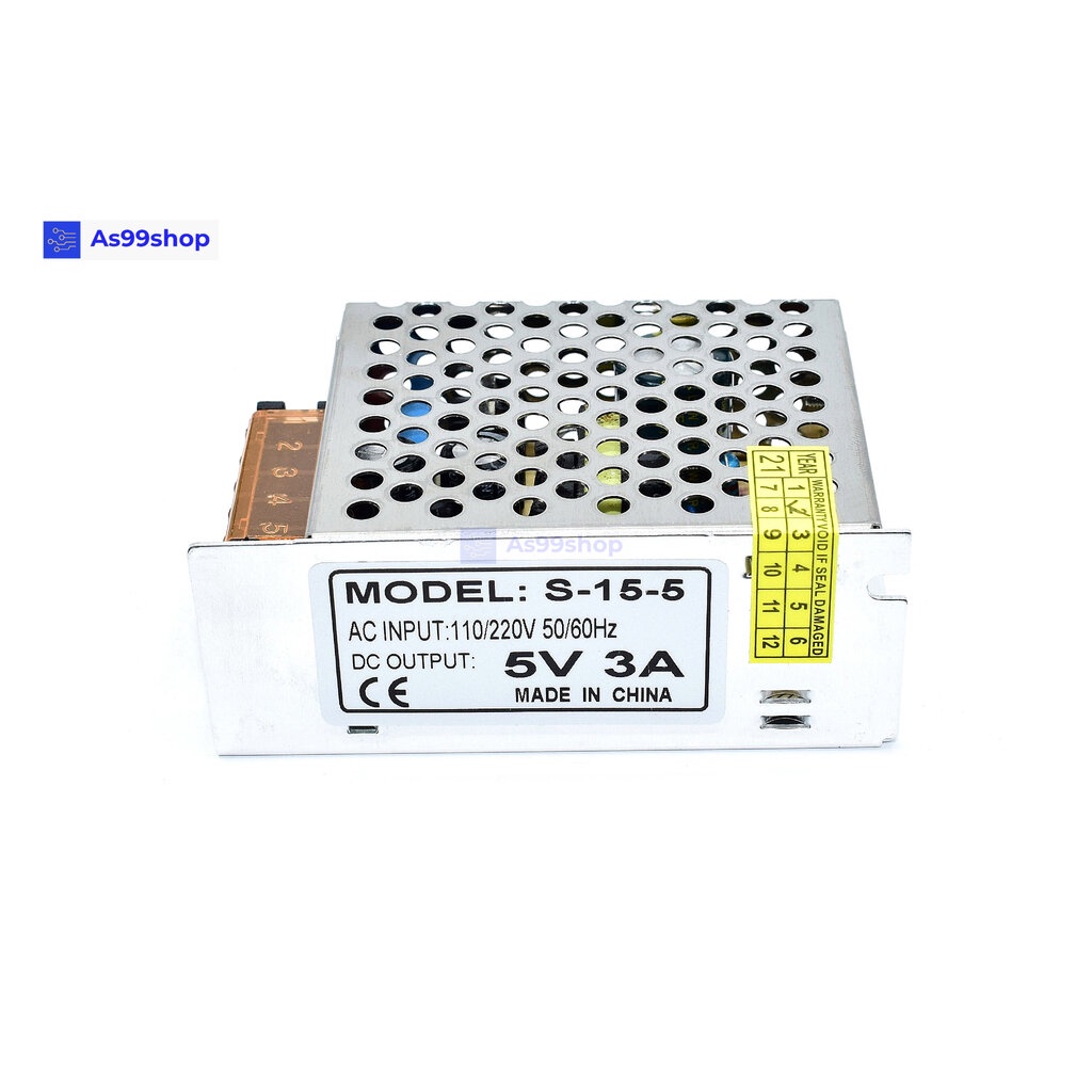 Switching Power Supply สวิตชิ่งเพาเวอร์ซัพพลาย 5V 3A 15W(สีเงิน) S-15-5