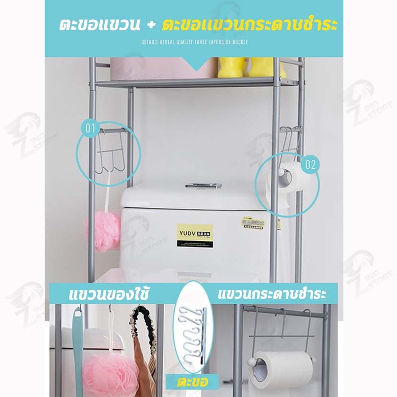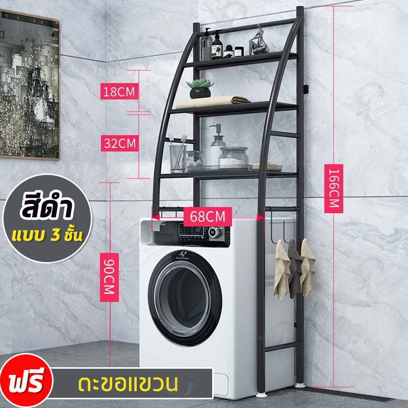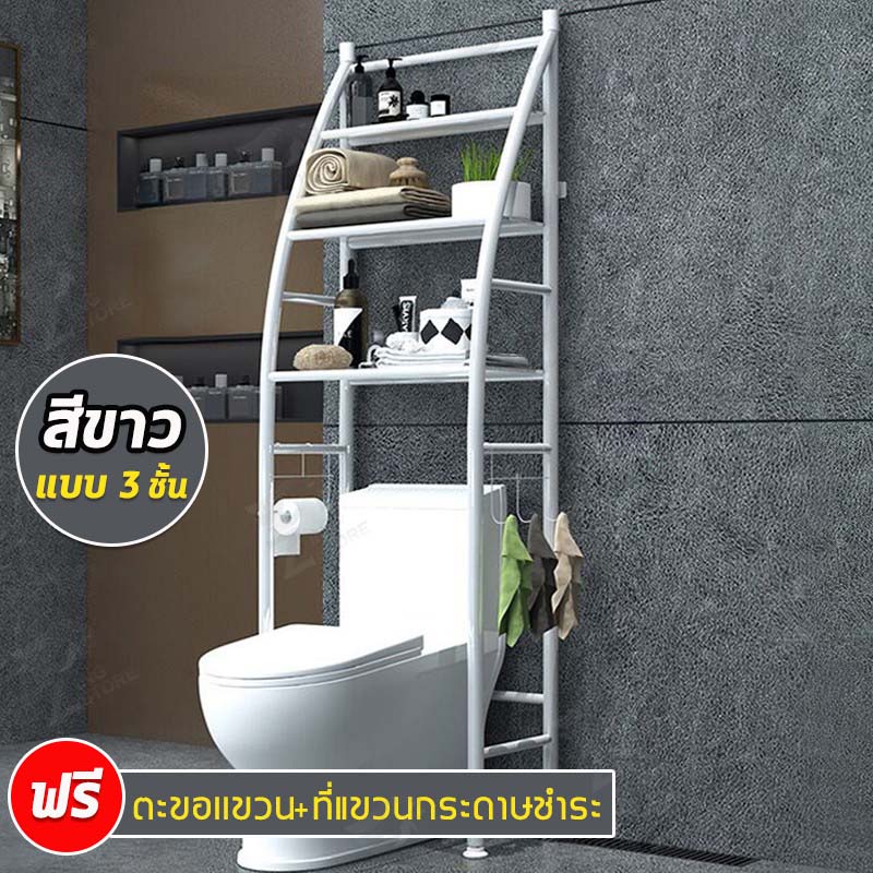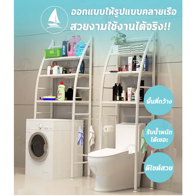 [รูปทรงคล้ายเรือ] ชั้นวางของโครงเหล็ก คร่อมชักโครก คร่อมเครื่องซักผ้า ปรับความสูง-ต่ำได้ ติดตั้งง่าย FH
