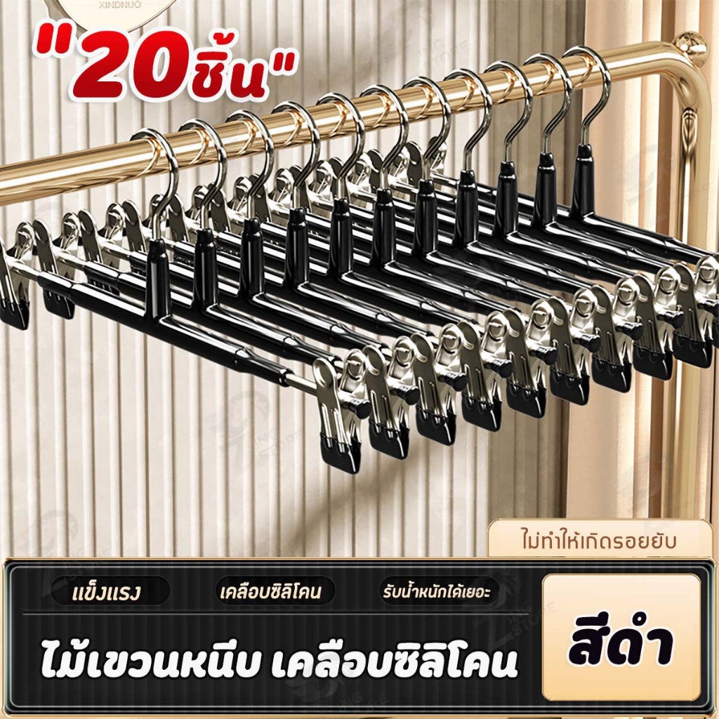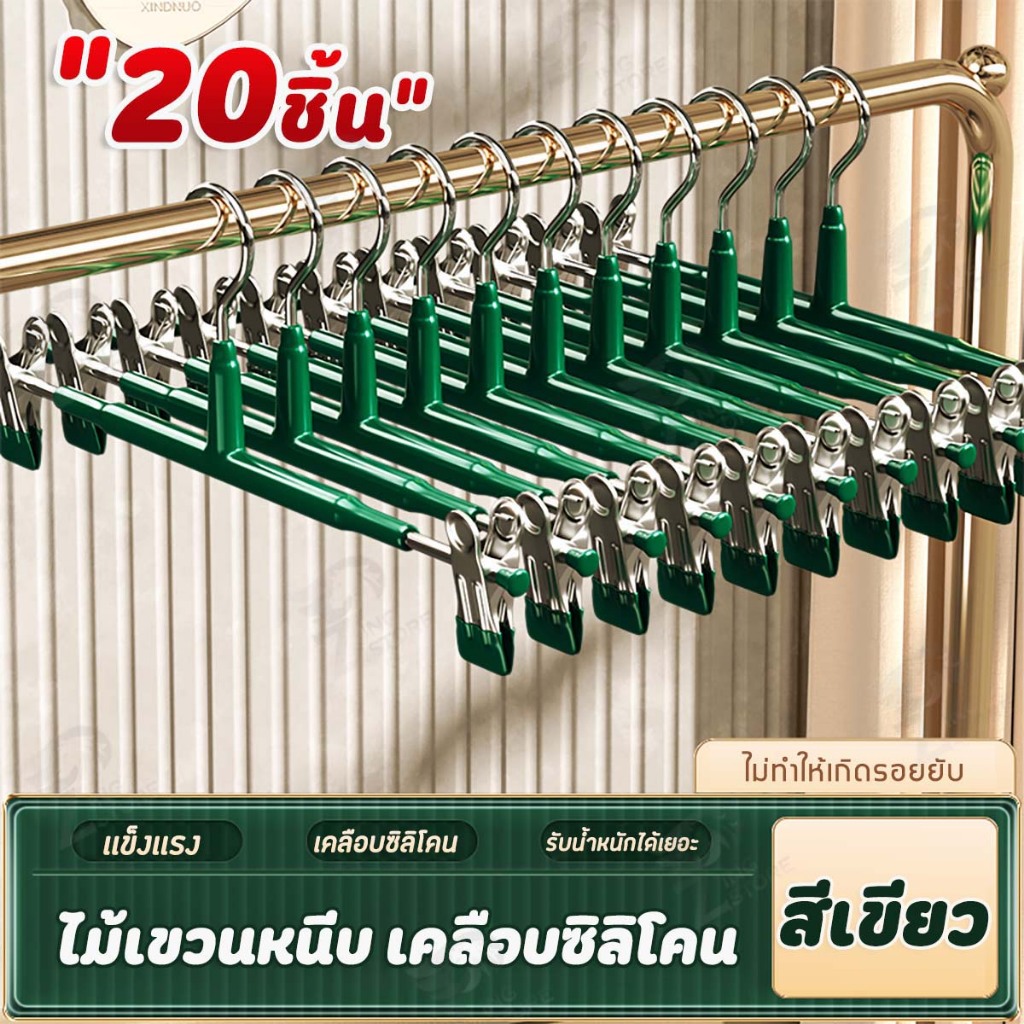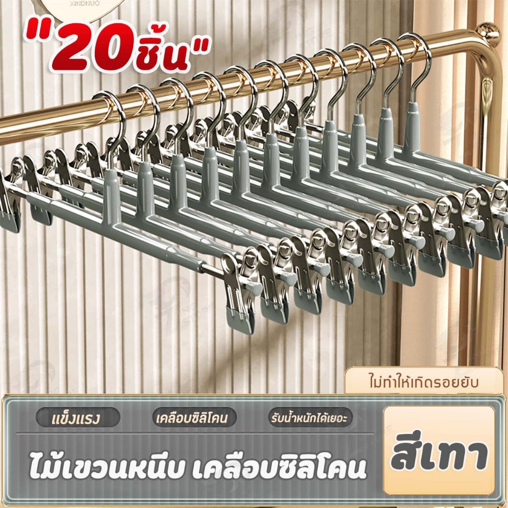 [10แถม10] ไม้แขวนเสื้อหนีบ ไม้แขวนเสื้อแบบหนีบ ไม้หนีบผ้า แขวนผ้า หนีบกางเกง กระโปรง สแตนเลส เคลือบซิลิโคนหนา SG 2 PCS
