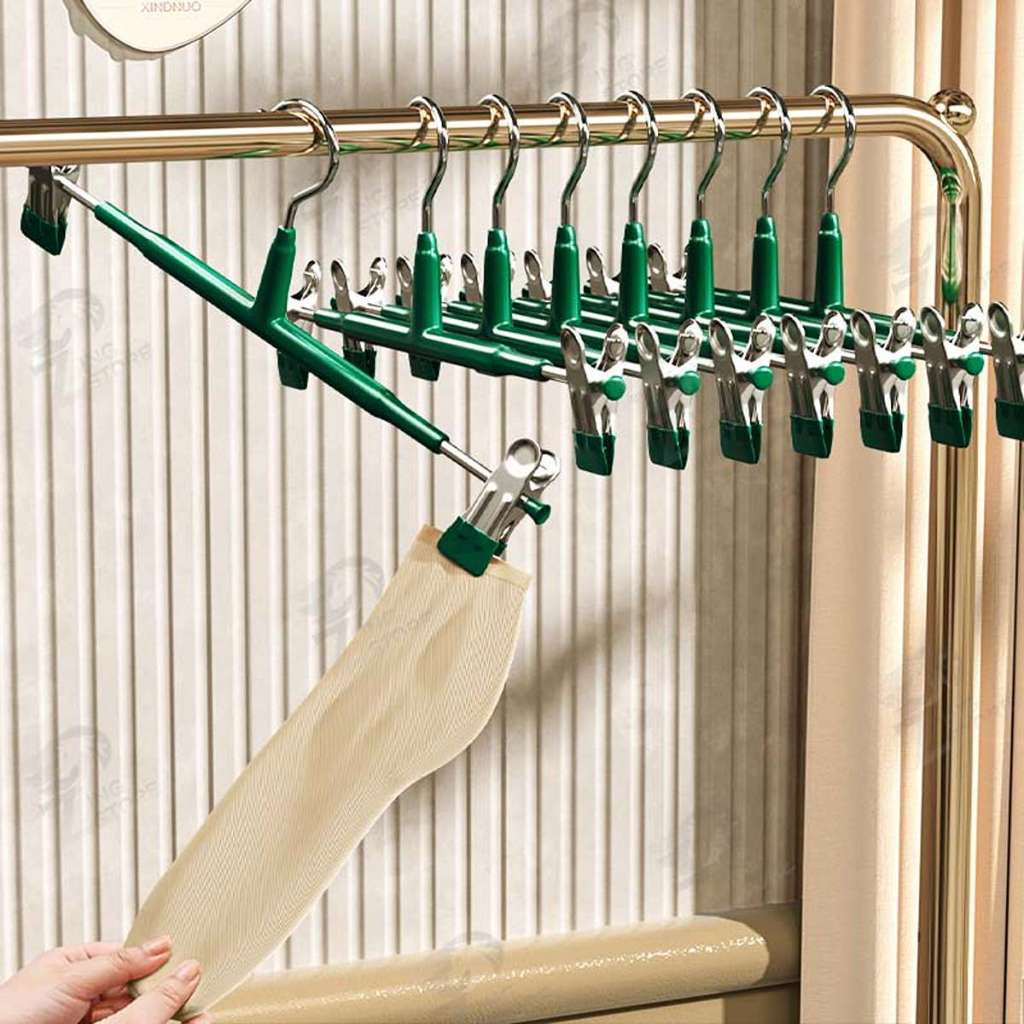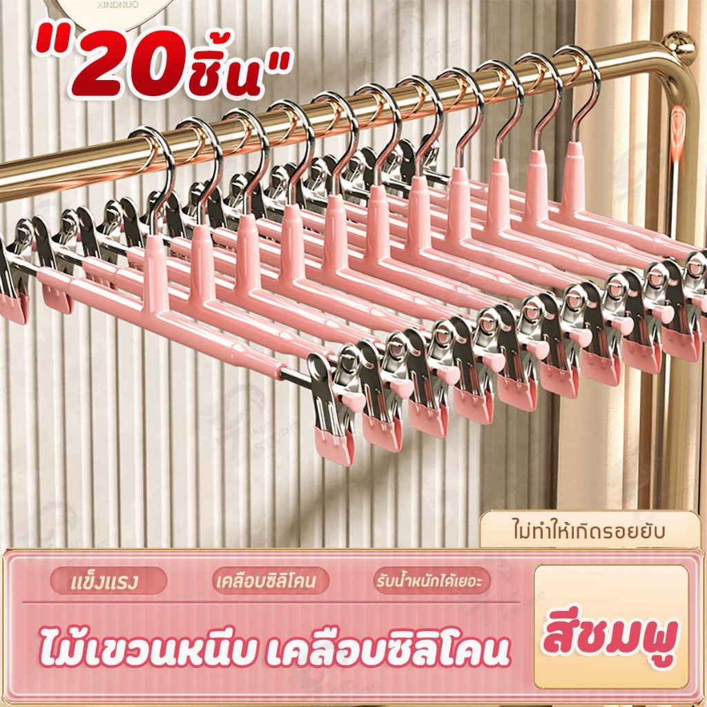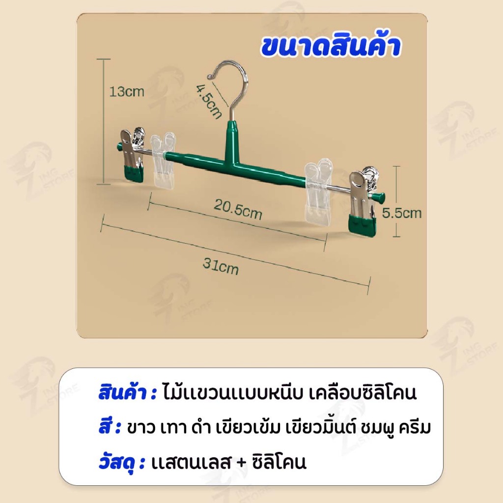 [10แถม10] ไม้แขวนเสื้อหนีบ ไม้แขวนเสื้อแบบหนีบ ไม้หนีบผ้า แขวนผ้า หนีบกางเกง กระโปรง สแตนเลส เคลือบซิลิโคนหนา SG 2 PCS