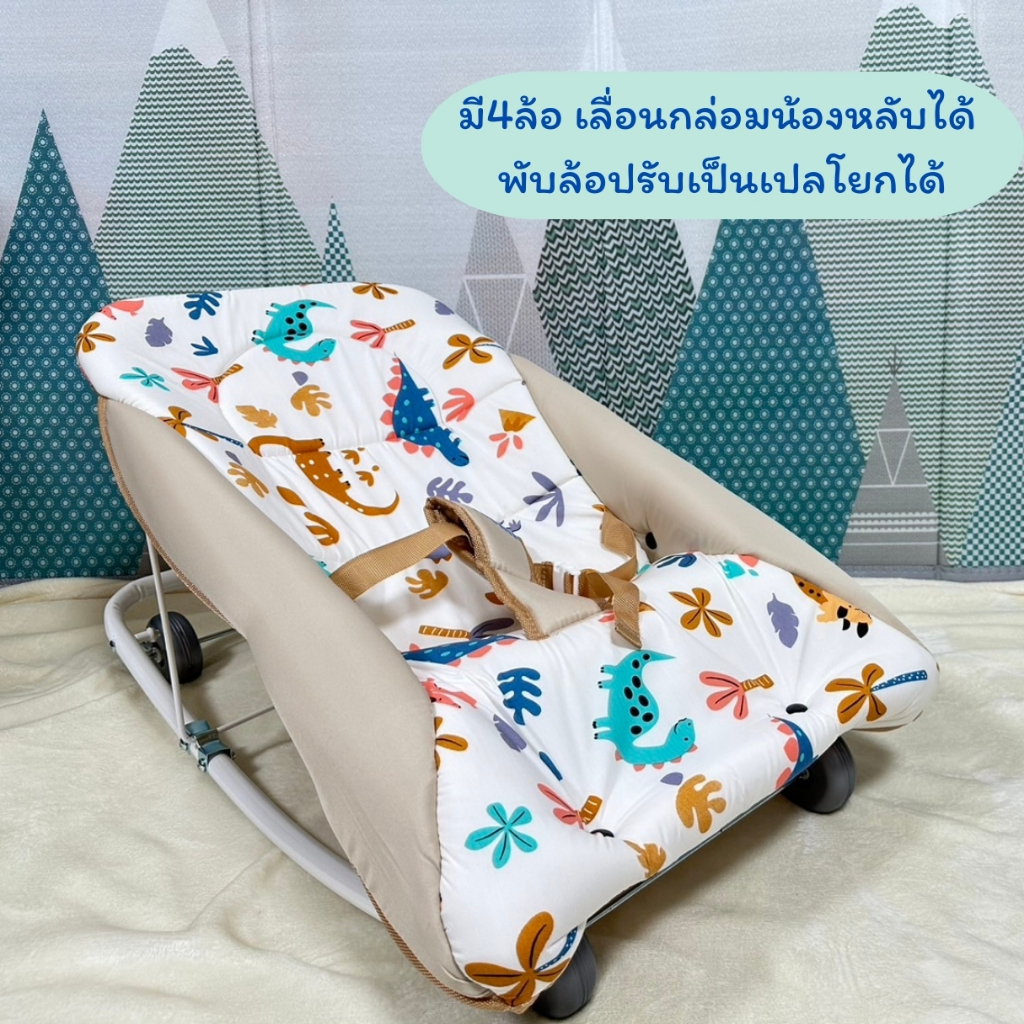 kichiro เปลโยกเด็กคิชิโระ รุ่นไดโนน้อย ปรับได้ 3 ระดับ ผ้าเปลถอดซักได้ มี4ล้อ เลื่อนได้ โยกได้ ผ้าอย่างดี นอนนุ่มสบาย