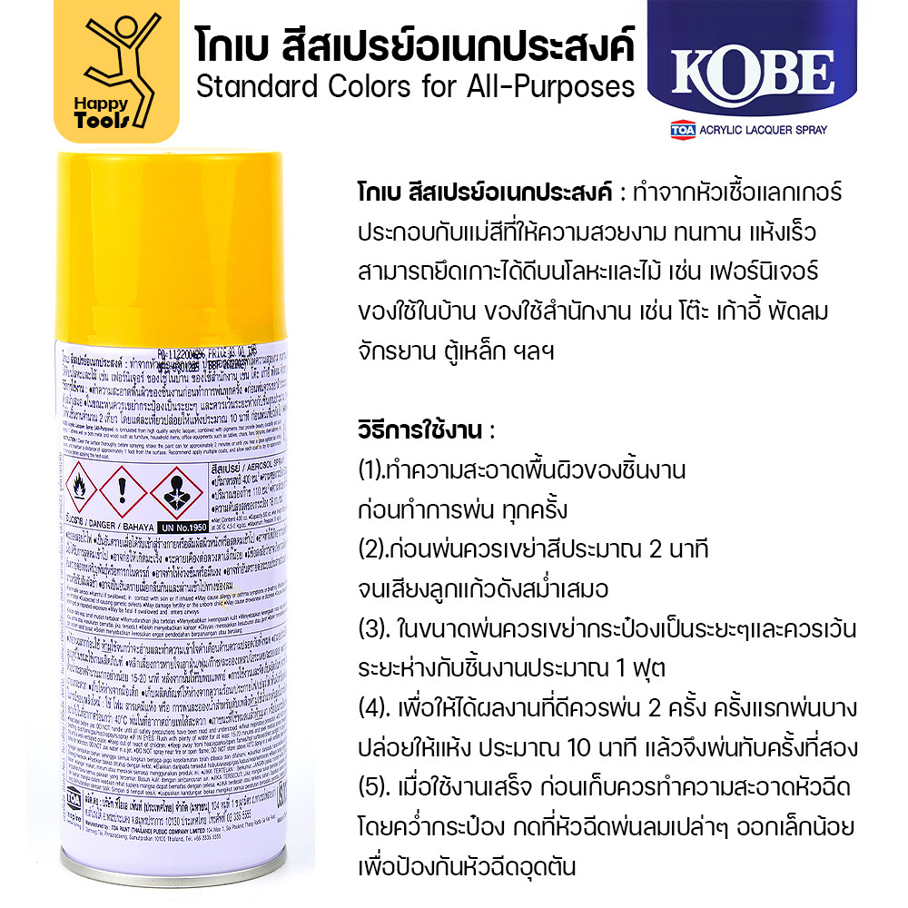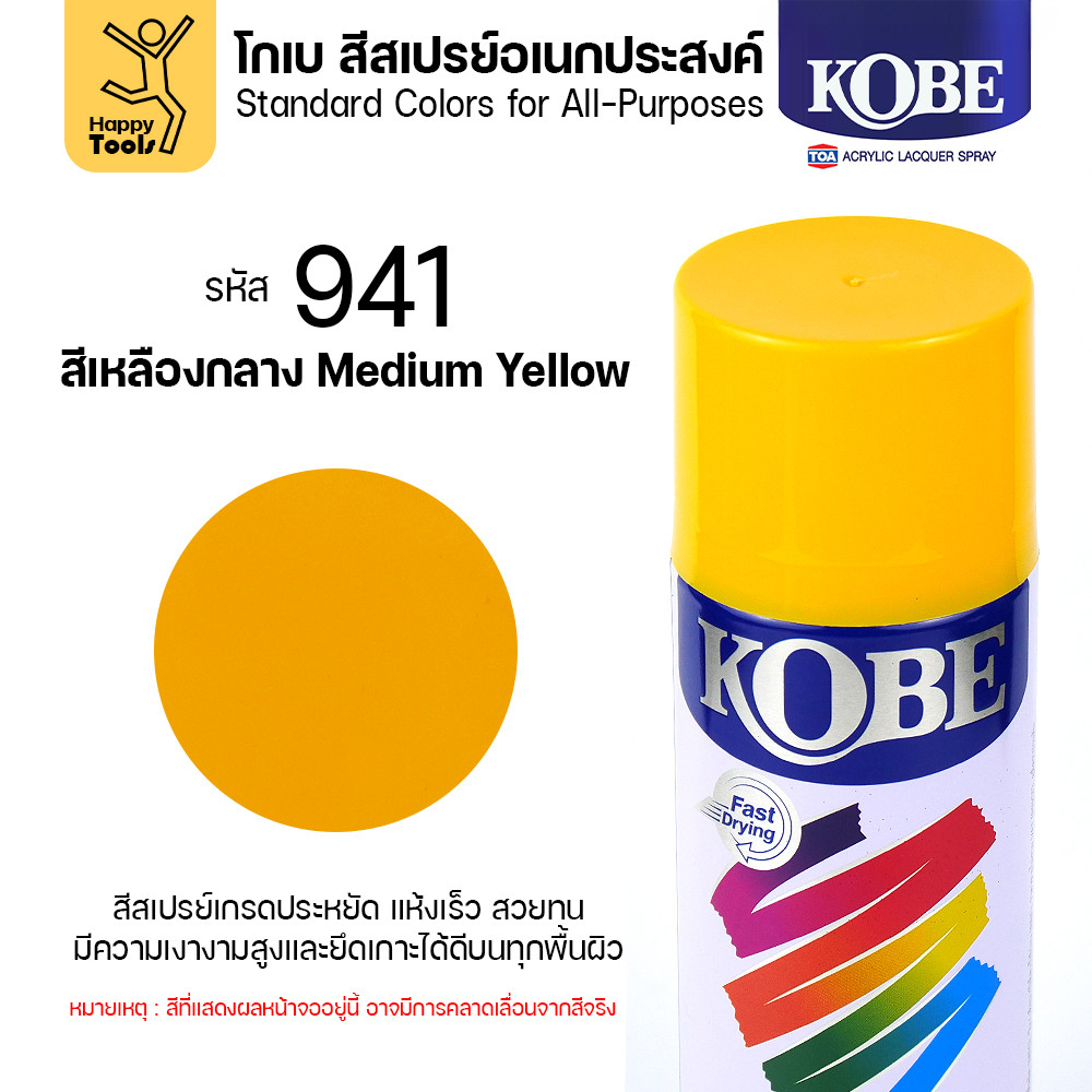 (1กระป๋อง) สีสเปรย์ KOBE รหัสสี #941 ชื่อสี Medium Yellow (สีเหลืองเข้ม) ขนาด400CC ของแท้ ราคาดี มีของพร้อมส่งตลอด