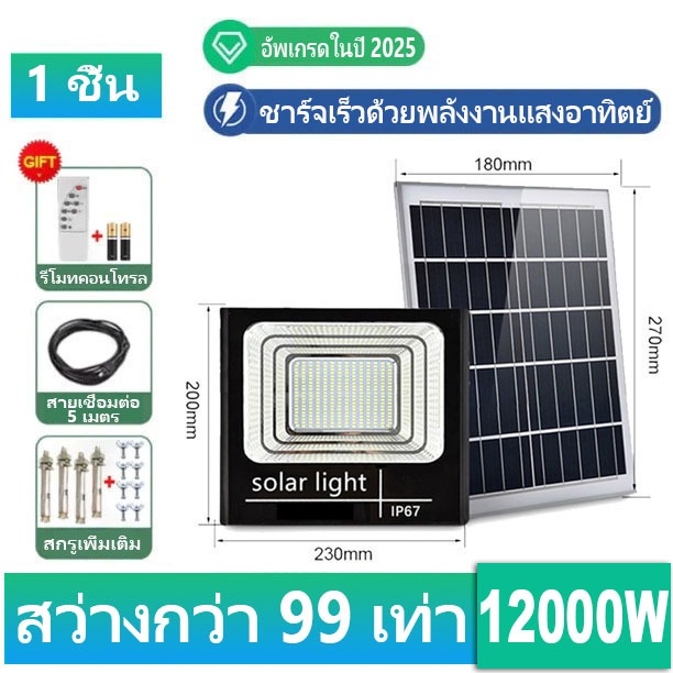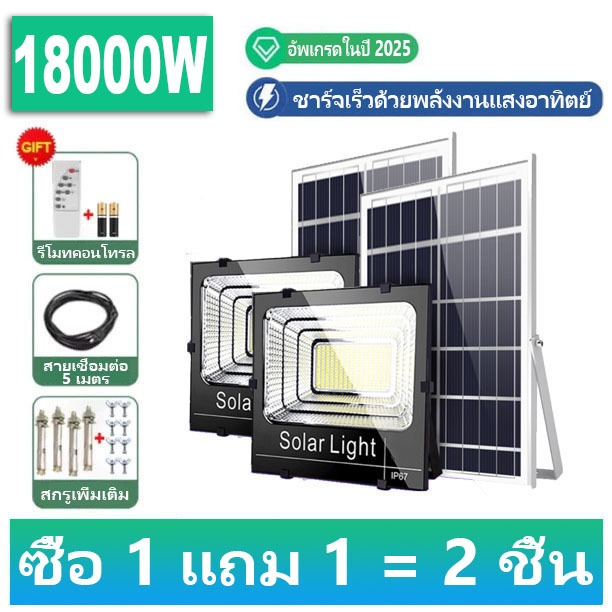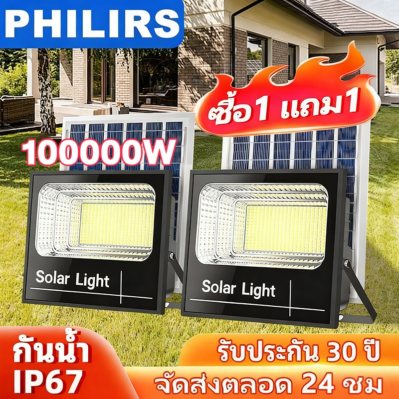 ⚡ซื้อ1แถม1⚡ไฟโซล่าเซลล์ หลอดไฟ led 100000W IP68 กันน้ำ กันฟ้าผ่า โซล่าแสงสีขาว ไฟถนน เซ็นเซอร์ Solar Light โซล่าเซลล์