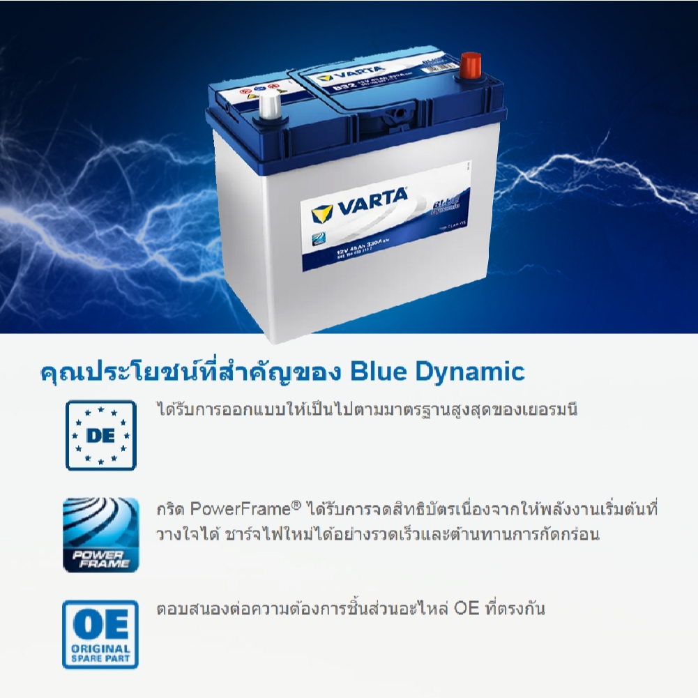 แบตเตอรี่ Battery VARTA รุ่น 95D31R/L Blue Dynamic แบตเตอรี่แห้ง (ไม่ต้องดูแลน้ำกลั่น)