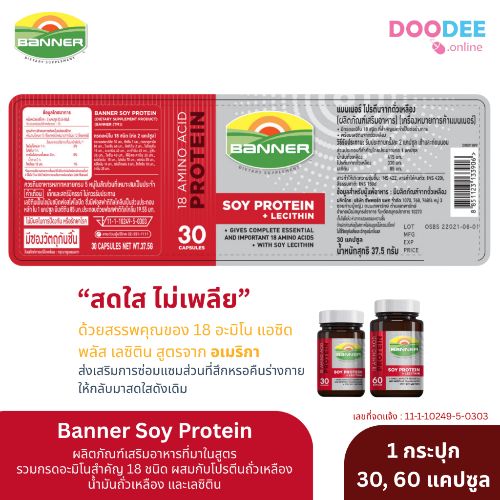 BANNER SOY PROTEIN แบนเนอร์ โปรตีน สีแดง 30,60 เม็ด (P08-3)