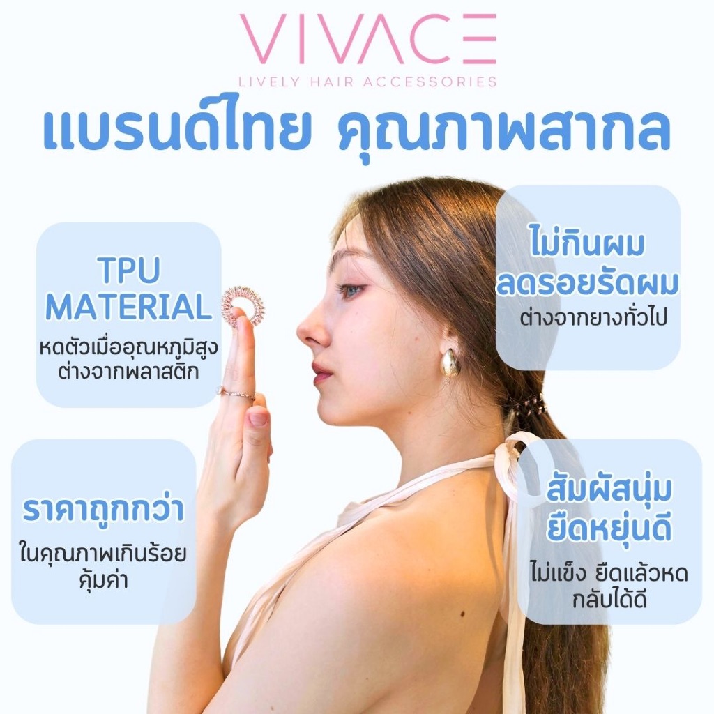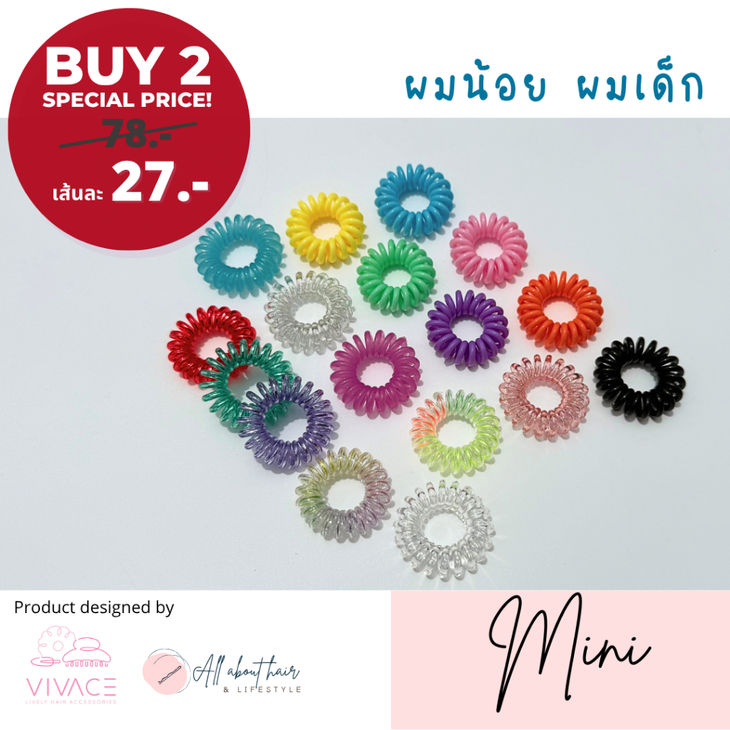 [Pro-ซื้อ 2 เส้นถูกกว่า] ยางรัดผม ยี่ห้อ VIVACE รุ่น Mini คุณภาพสูง ผมไม่เป็นรอย รัดผมเด็ก หดได้