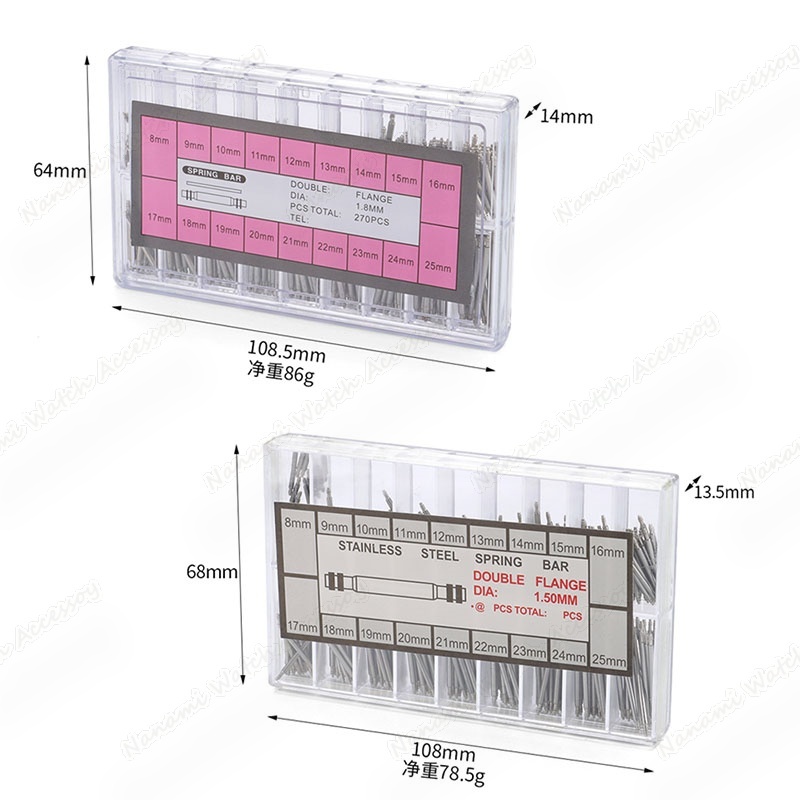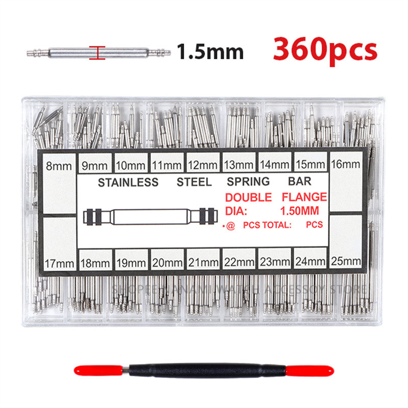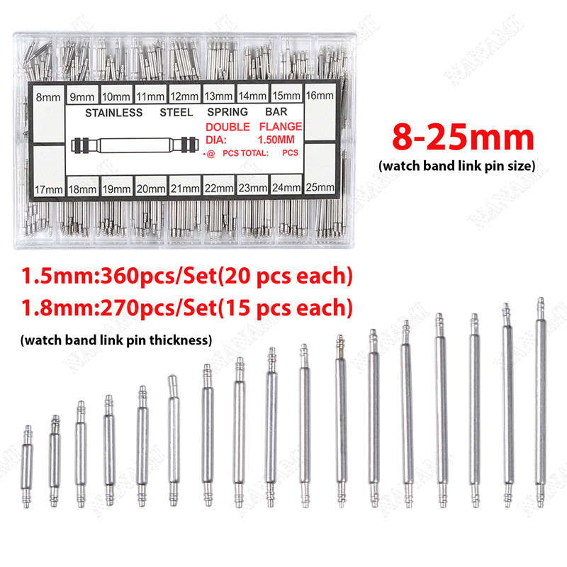 270/360ชิ้นสแตนเลสนาฬิกาวงฤดูใบไม้ผลิบาร์ก้าน8มิลลิเมตร-25มิลลิเมตรเส้นผ่าศูนย์กลาง1.5มิลลิเมตร/1.8มิลลิเมตรนาฬิกาซ่อมสายลิงค์ หมุด เครื่องมือสําหรับช่างซ่อมนาฬิกานาฬิกาอุปกร