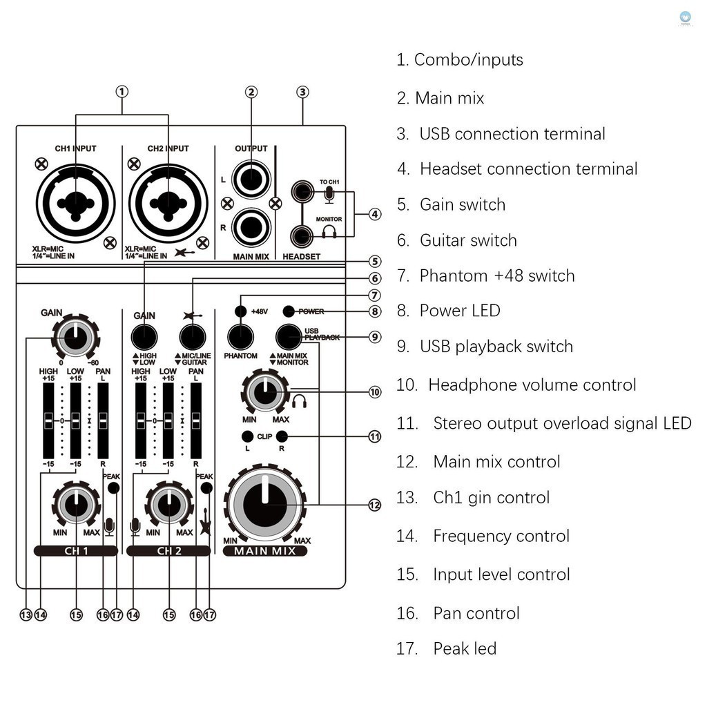 Tpt Mini 3-Channel การ ์ ดเสียงผสมคอนโซลดิจิตอล Audio Mixer ในตัว 48V Phantom Power 5V USB ขับเคลื ่ อนสําหรับ Home Studio บันทึก DJ เครือข ่ าย Live Broadcast คาราโอเกะ