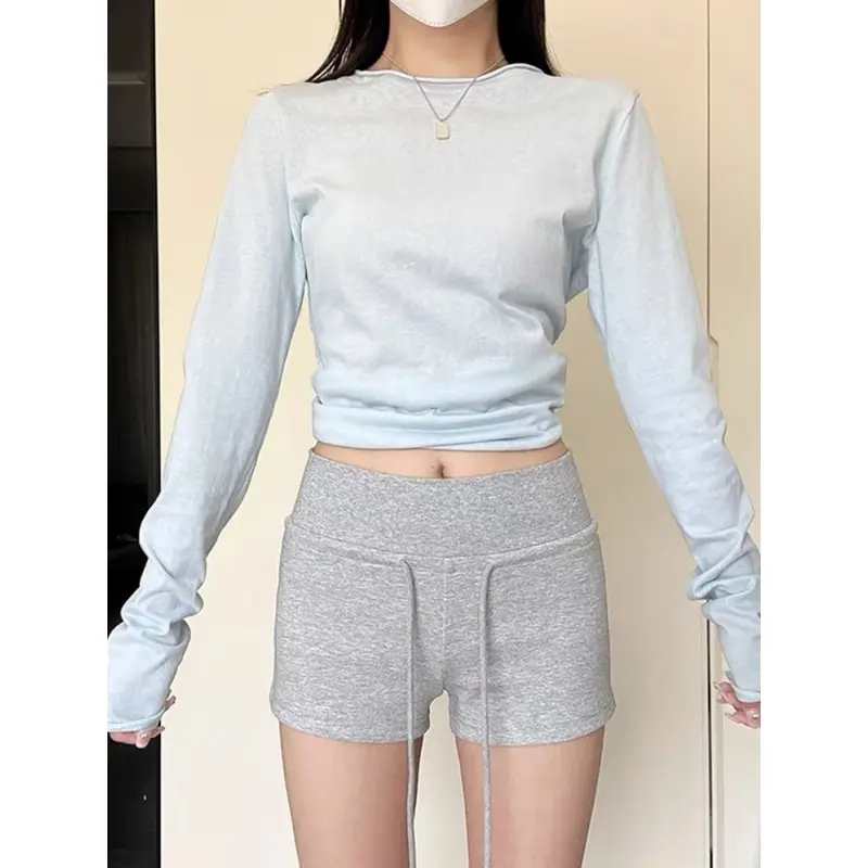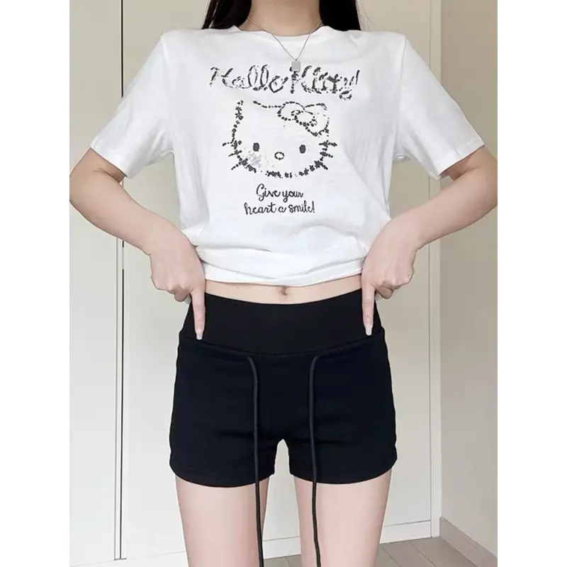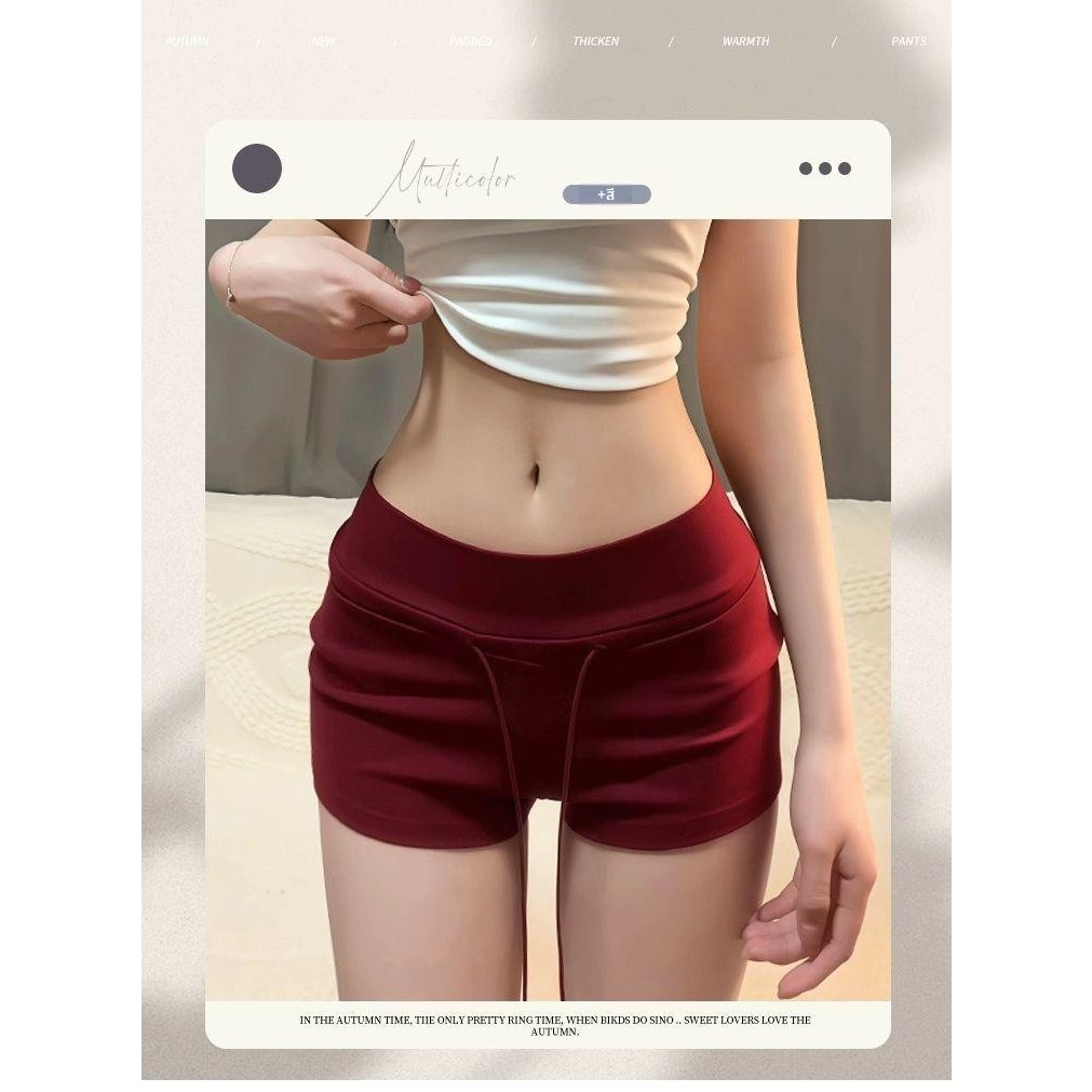 กางเกงขาสั้นรัดรูปสีแดง สไตล์ใหม่สำหรับฤดูร้อน สวมใส่สบายและใช้งานได้หลากหลาย สไตล์สาวฮอตแบบอเมริกัน กางเกงขาสั้นแบบมีเช