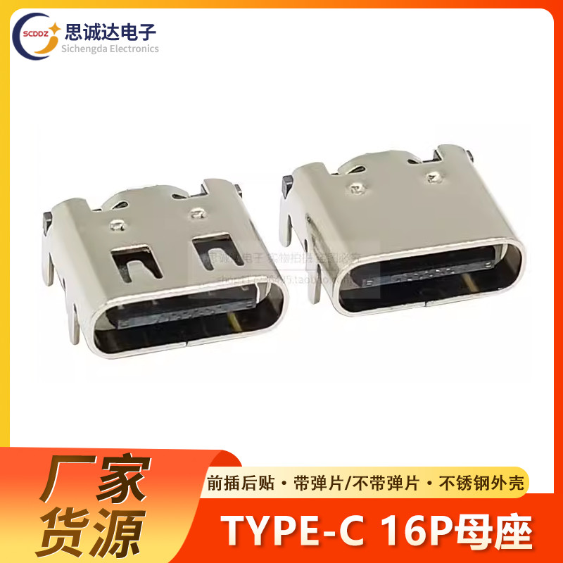 TYPE-C-31-M-12 Patch USB-3.1 ซ็อกเก็ต 16P TYPE-C ซ็อกเก็ตหญิง HD อินเทอร์เฟซเกียร์ 4 Pins TYPE-C 16P 6P ไม่มี Shrrapnel สีขาวสีส้มสีฟ้าสีเขียวยาง Core