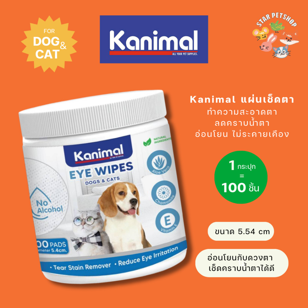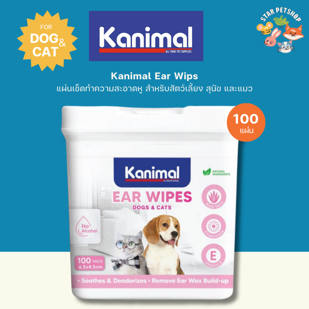 Kanimal Ear Wipes แผ่นเปียกสำหรับเช็ดหู สุนัขและแมว บรรจุ 100 แผ่น/กระปุก