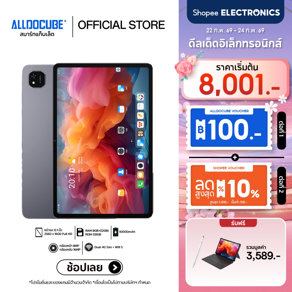 [SET แถมฟรี คีย์บอร์ด+ปากกา] ALLDOCUBE iPlay 60 Pad Pro แท็บเล็ต หน้าจอ 12.1 นิ้ว Refresh rate 90Hz แบตอึด ชาร์จไว