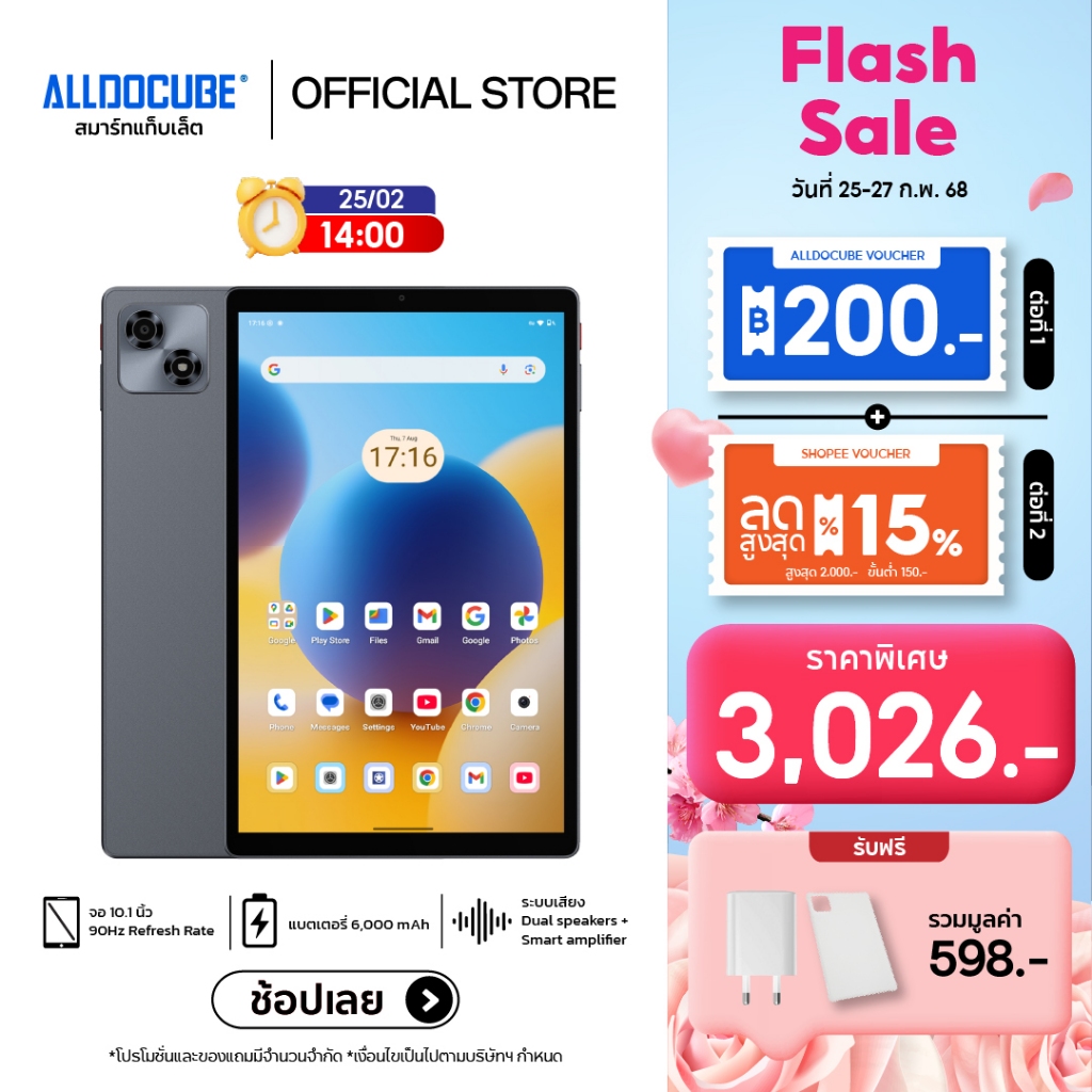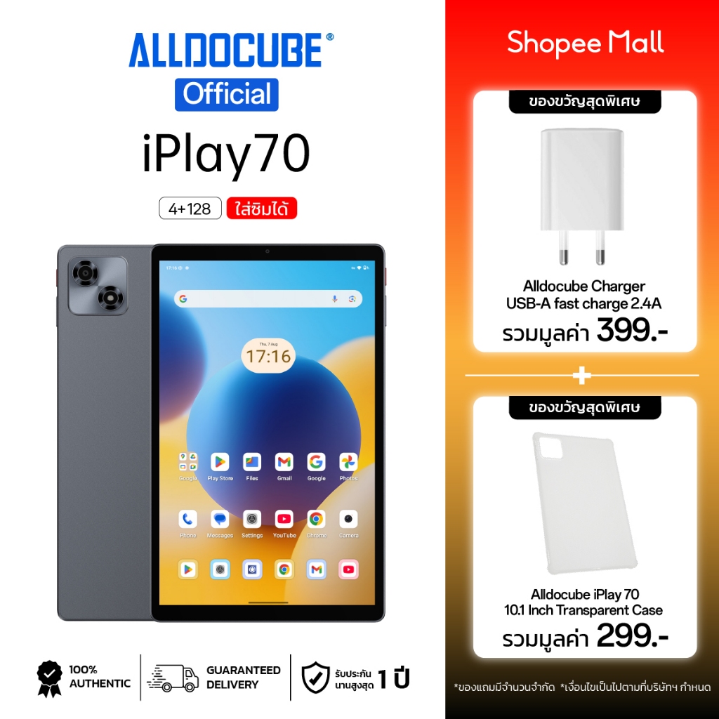 [NEW] [แถมฟรี! หัวชาร์จ+เคส] ALLDOCUBE แท็บเล็ต รุ่น iPlay 70 4+128GB 10นิ้ว 90Hz Android 15 รับประกัน12 เดือน