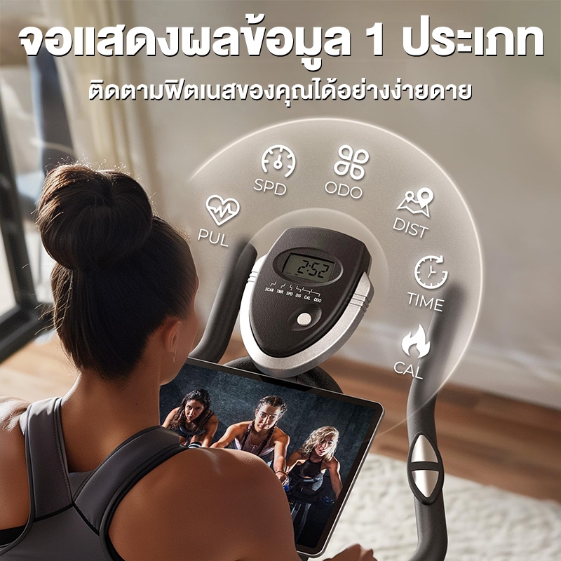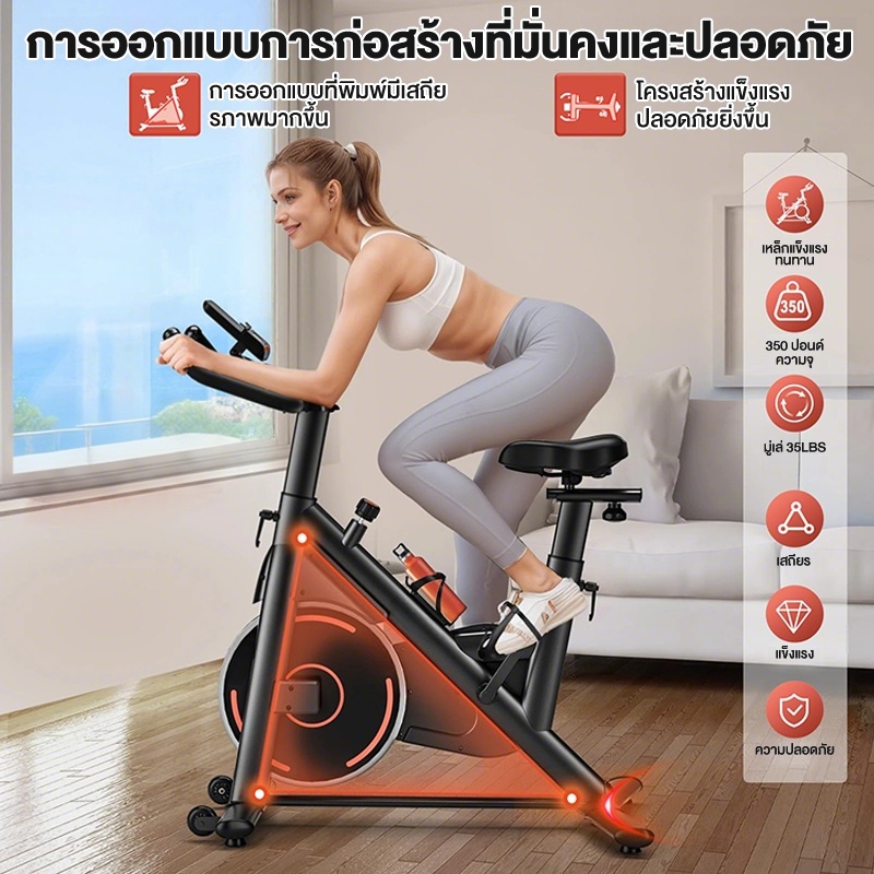จักรยานออกกำลังกาย Spin Bike | รับน้ำหนัก 600 กก. | หน้าจอ LCD + วัดอัตราหัวใจ | ปั่นในบ้าน บริหารต้นขา