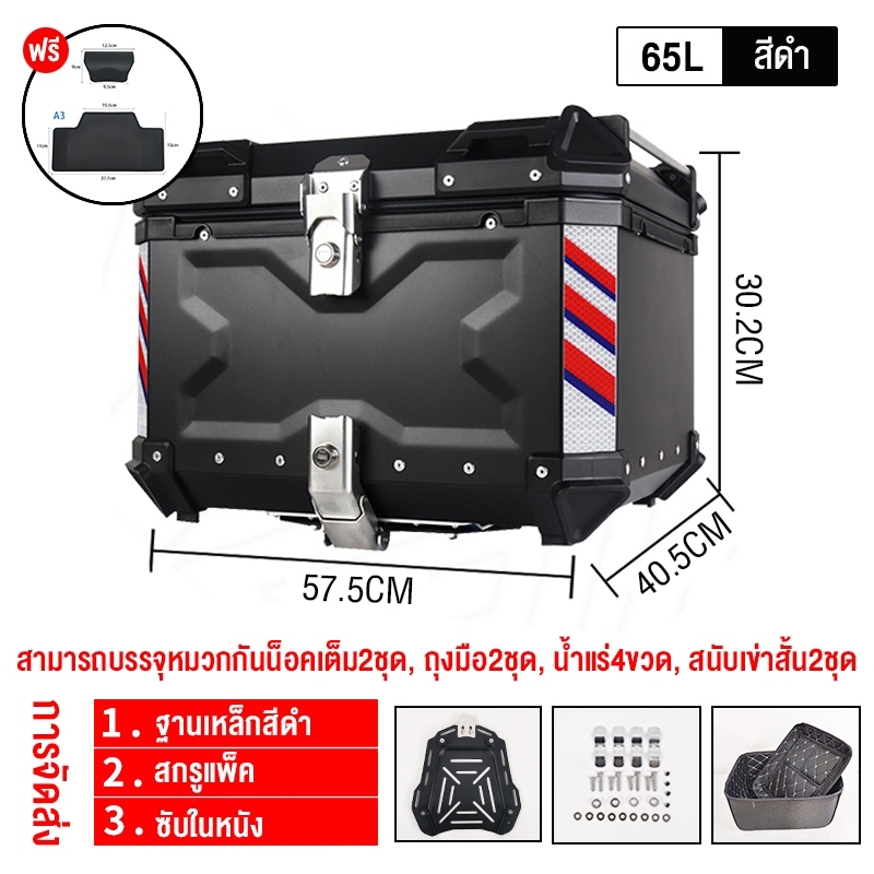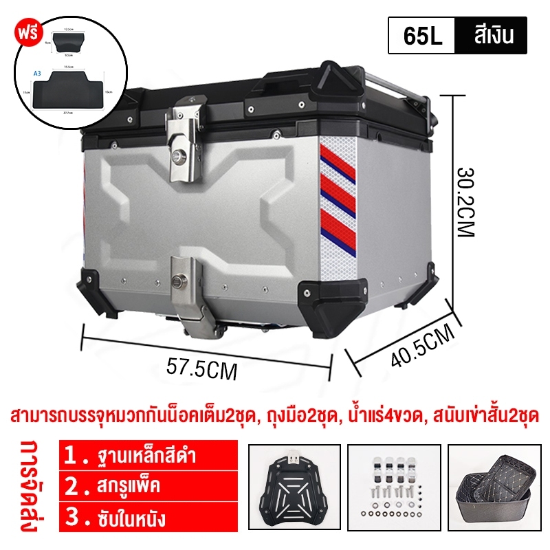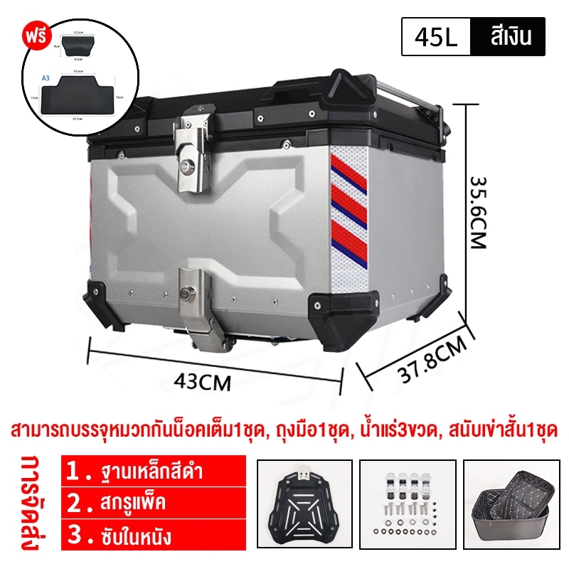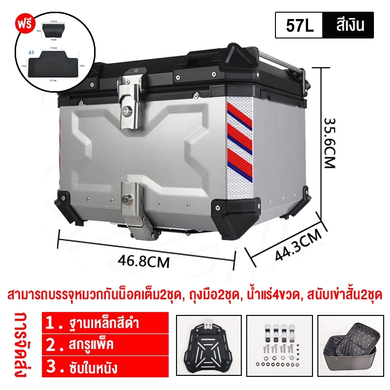 【รับประกัน 1 ปี】45/57/65L กล่องเก็บรถมอเตอร์ไซค์ กล่อง พรีเมี่ยม กระบะท้ายอลูมิเนียมมอเตอร์ไซค์ ปิ๊บหล bm motor
