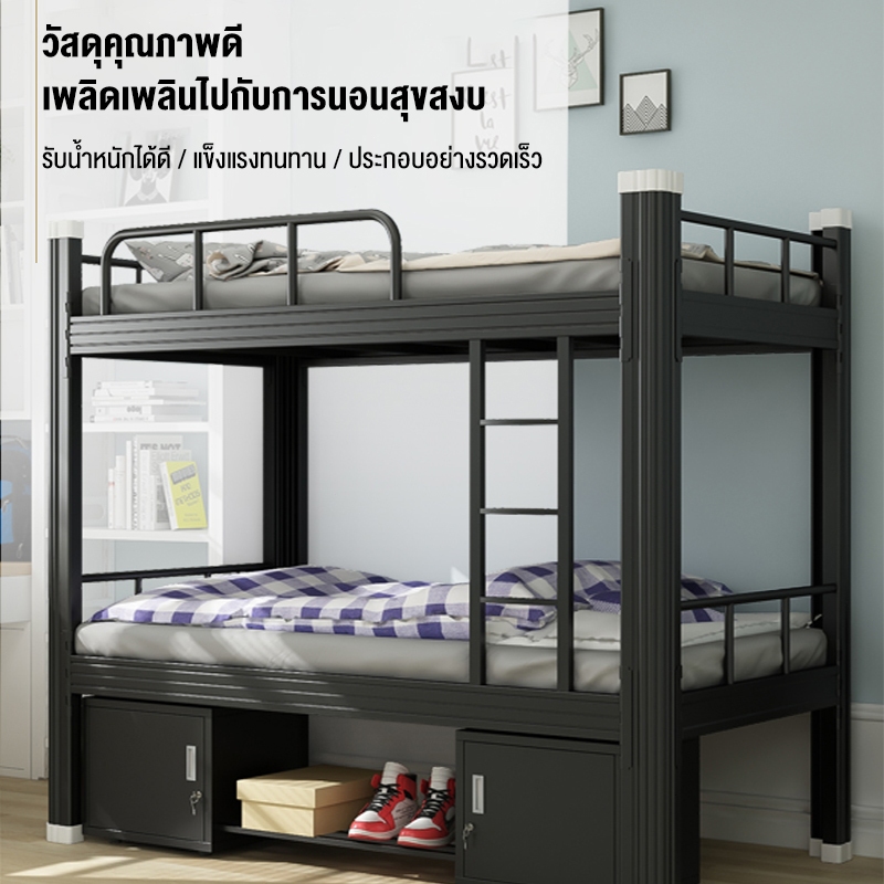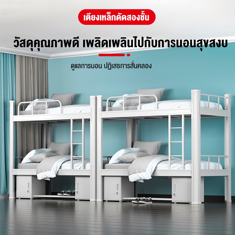 EFเตียงเหล็กสอง เตียงสองชั้น ใช้ได้กับหอพักนักเรียนและพนักงาน โครงเหล็ก เตียงมีความทนทาน