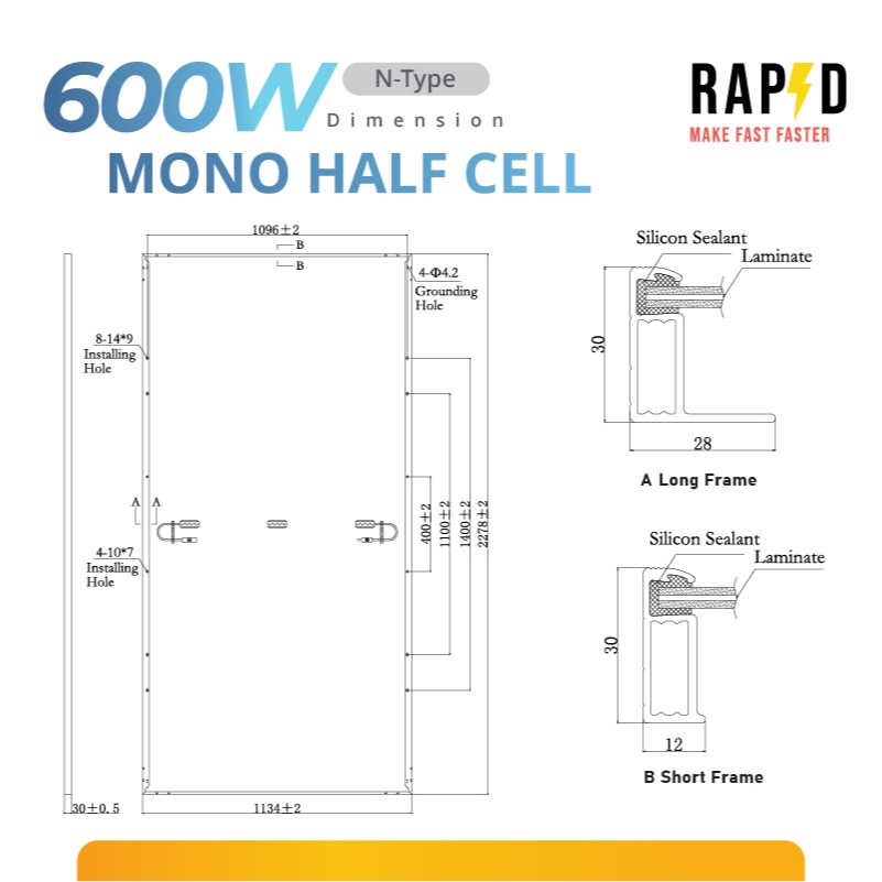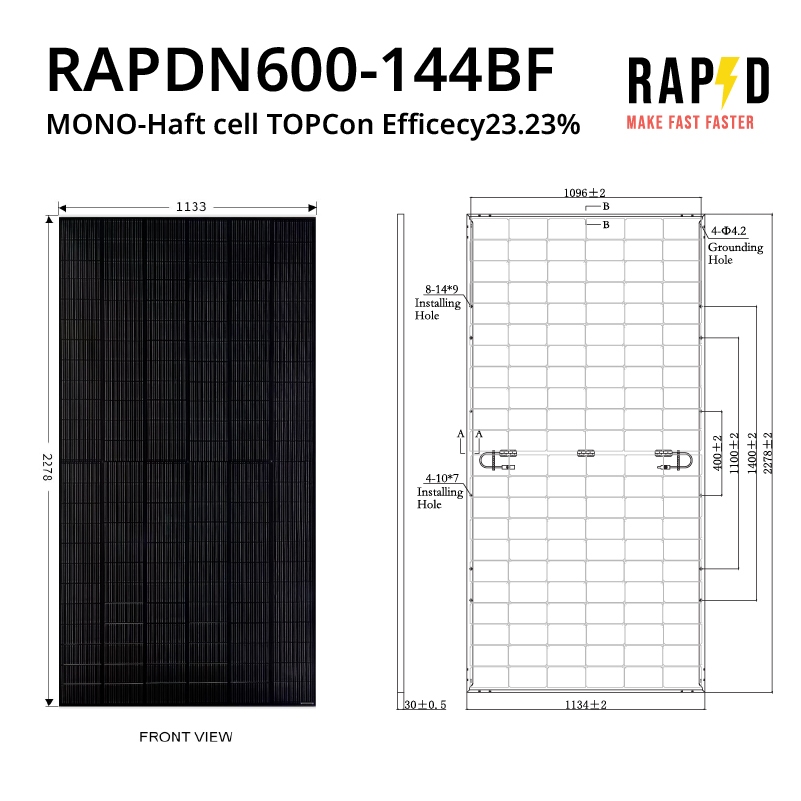 RAPD ฟรีค่าส่ง - แผงโซล่าเซลล์ 600W รับประกันแผง12ปี รับประกันไฟออก 30ปี
