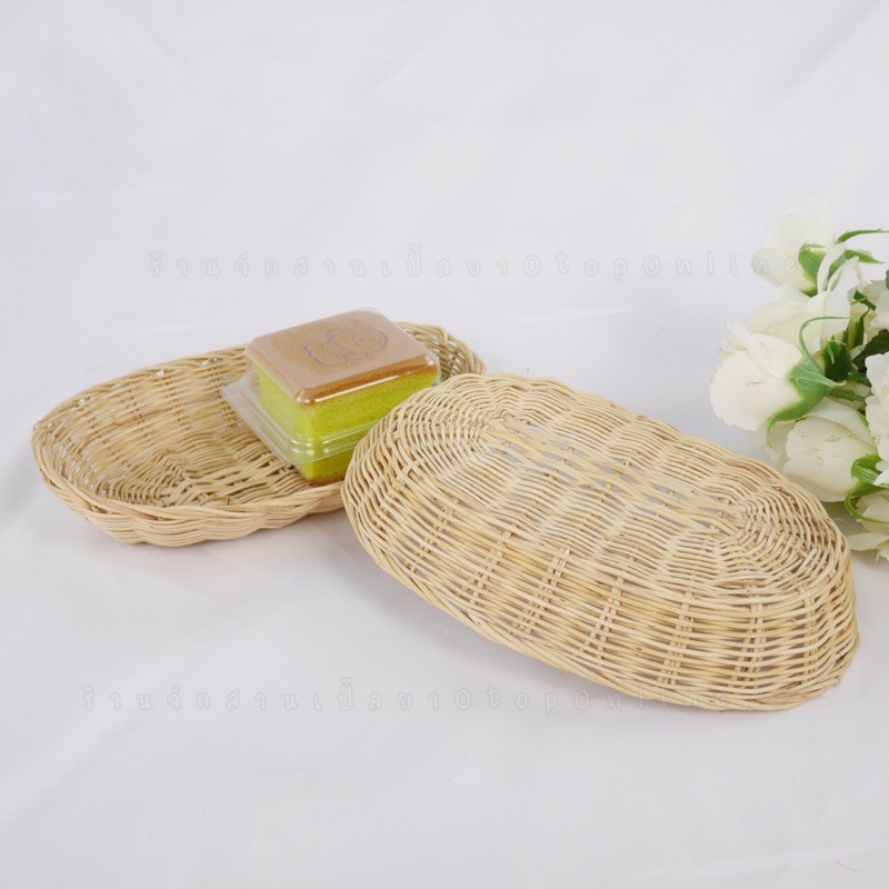 ถาดไส้หวาย (พานไส้หวายวงรี ขนาด14×20cm. )ถาดใส่ขนมเบเกอรี่‼️สินค้าขายดี‼️มีเก็บเงินปลายทางนะจ๊ะ‼️