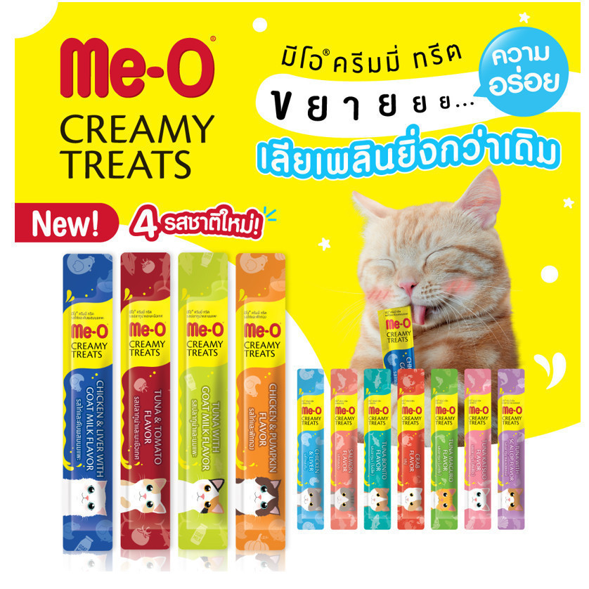 [แบ่ง 12ซอง] Me-O Creamy Treats ขนมแมวเลียมีโอ ไม่เติมเกลือ