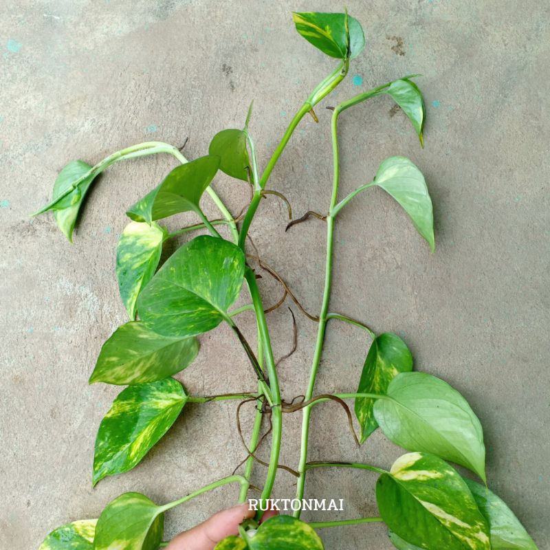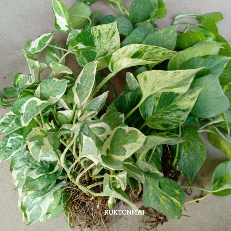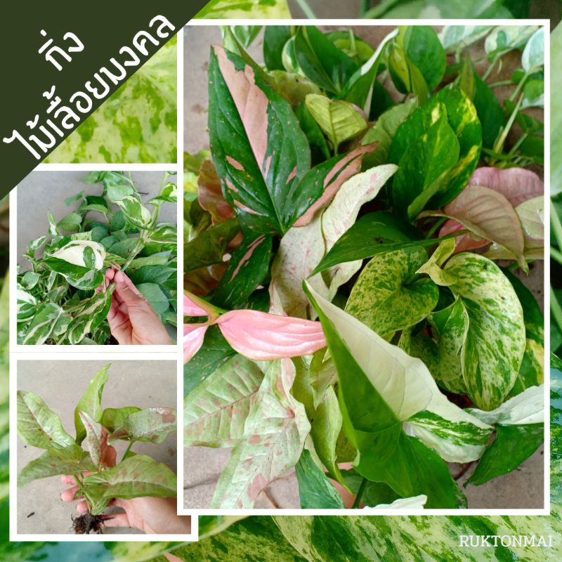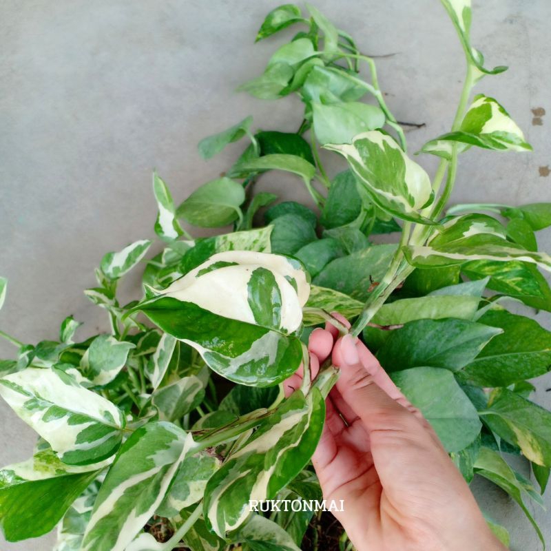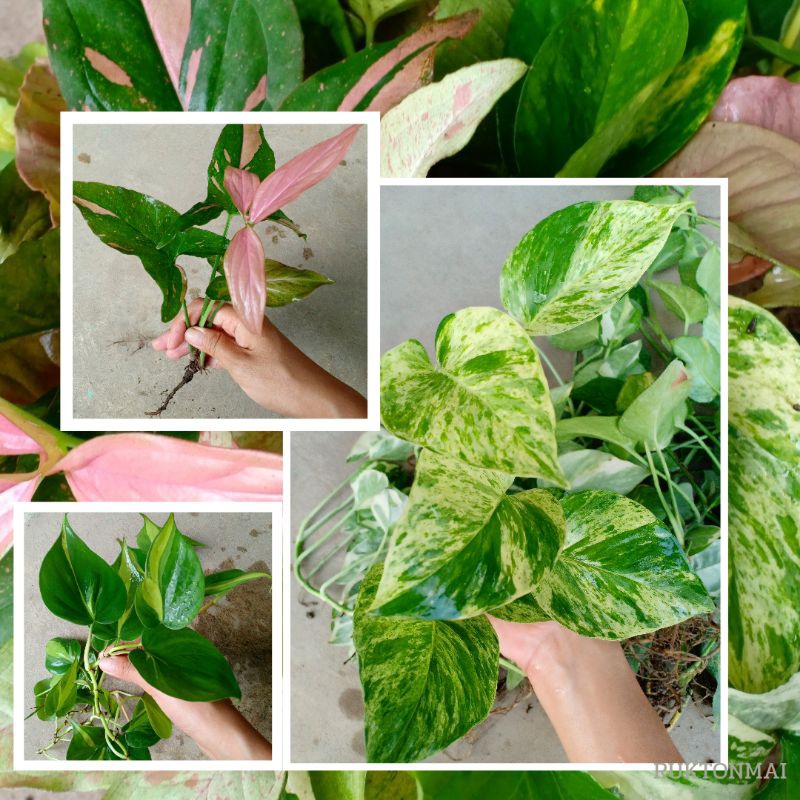 กิ่งไม้เลื้อยมงคล ไม้ประดับ ไม้ฟอกอากาศ ขายเป็นกิ่ง ราคาถูก มีหลายชนิดให้เลือก เช่น พลูด่าง ออมชมพู เงินไหลมา