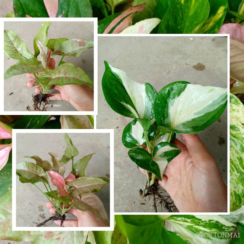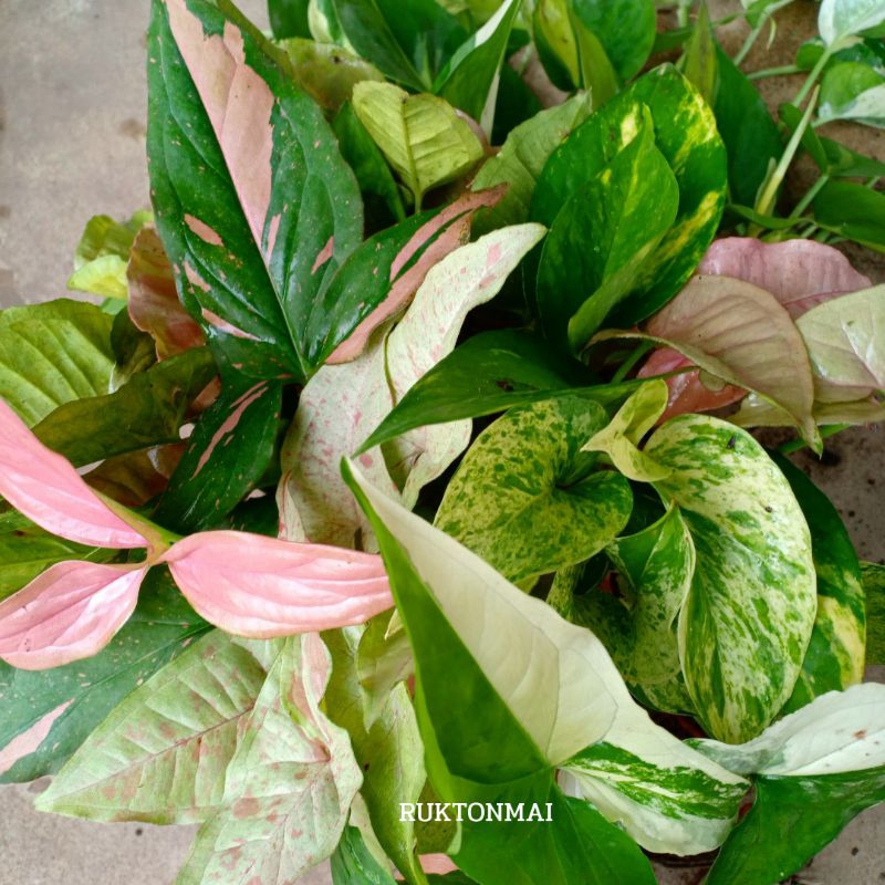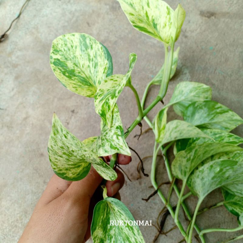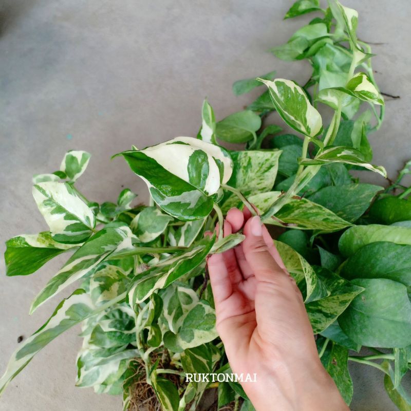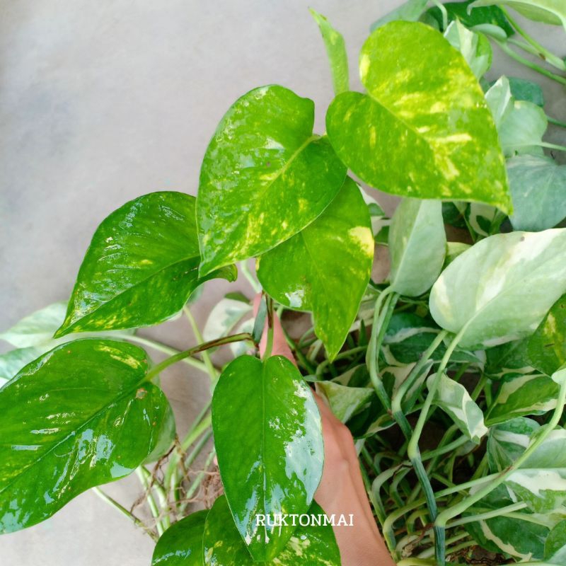 กิ่งไม้เลื้อยมงคล ไม้ประดับ ไม้ฟอกอากาศ ขายเป็นกิ่ง ราคาถูก มีหลายชนิดให้เลือก เช่น พลูด่าง ออมชมพู เงินไหลมา