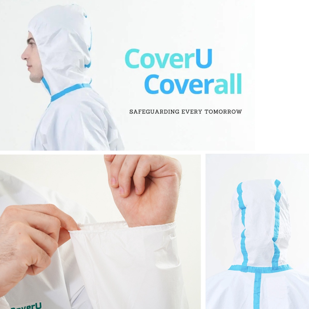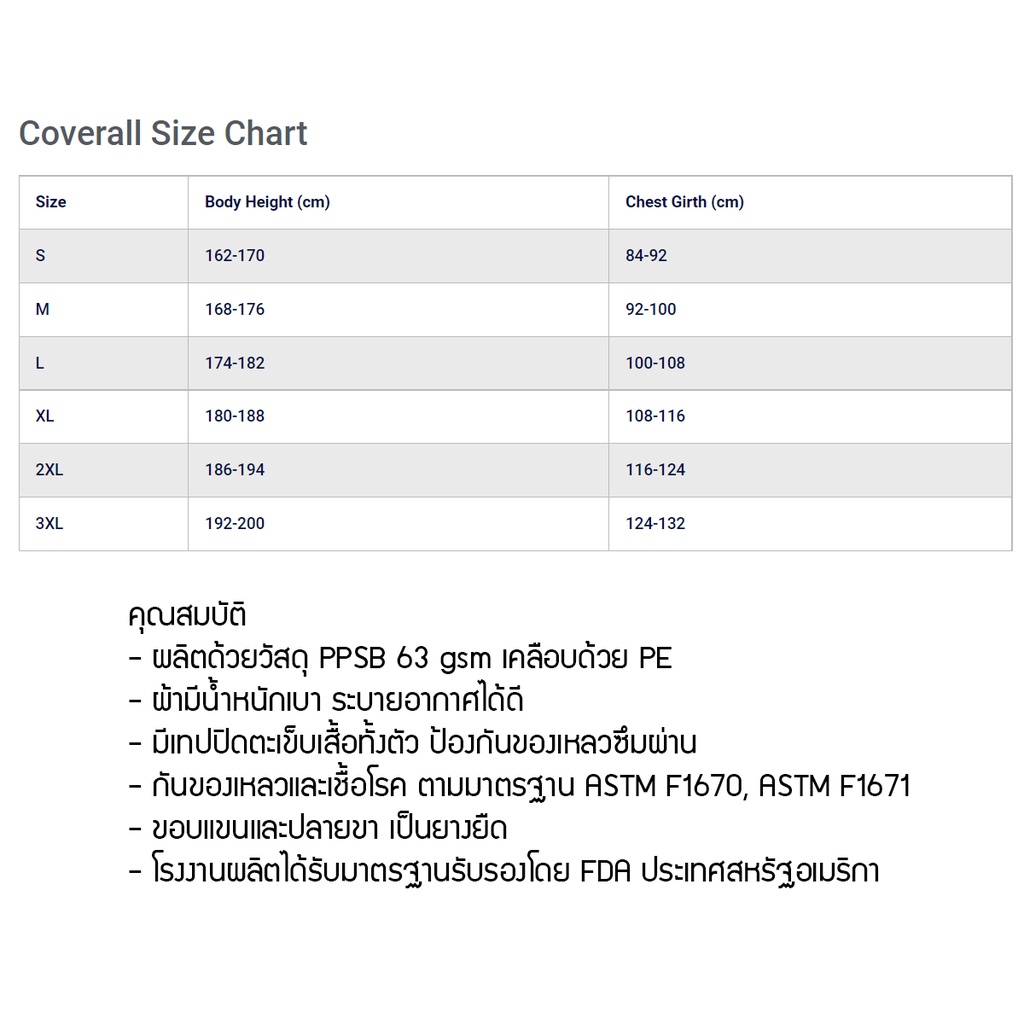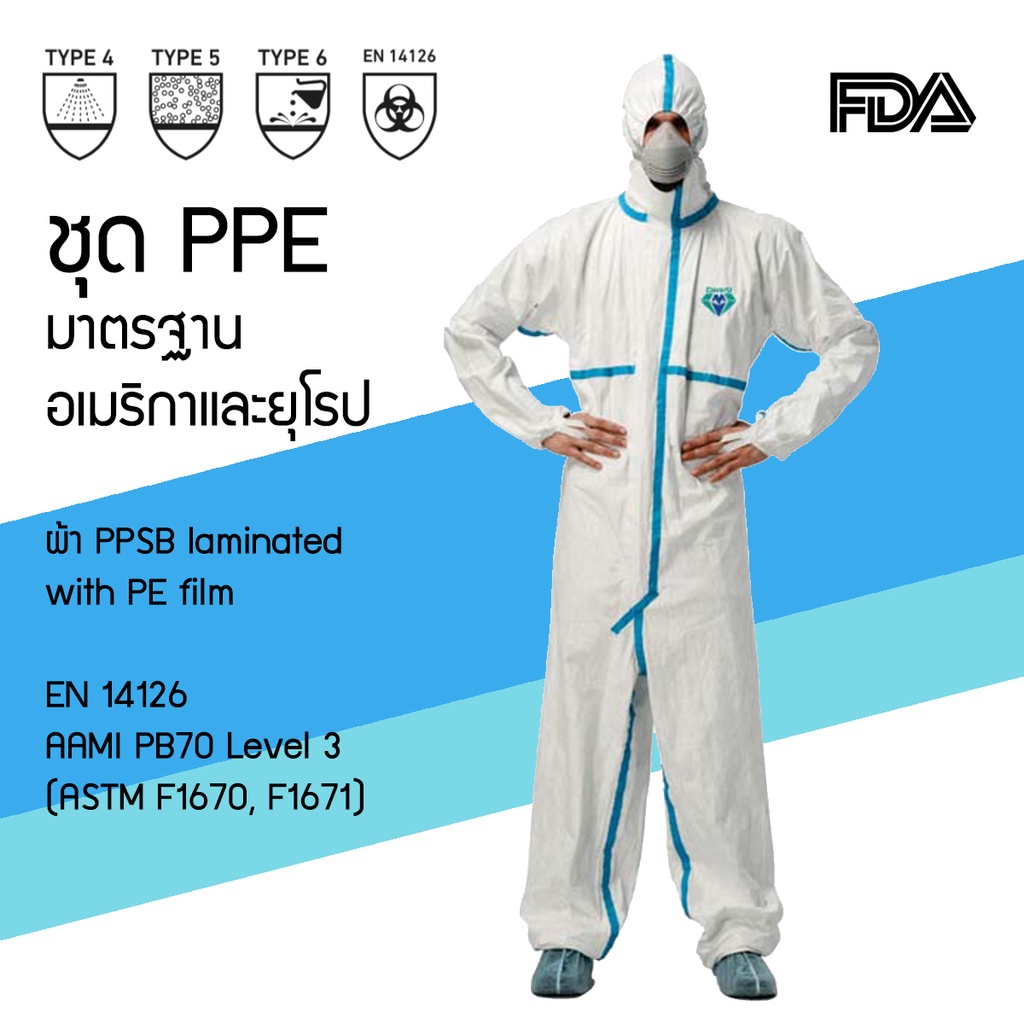 dapp Uniform ชุดป้องกันความปลอดภัยทางการแพทย์แบบใช้แล้วทิ้งสำหรับโรงพยาบาล สีขาวแถบฟ้า 63 กรัม EN14126 ป้องกันละอ