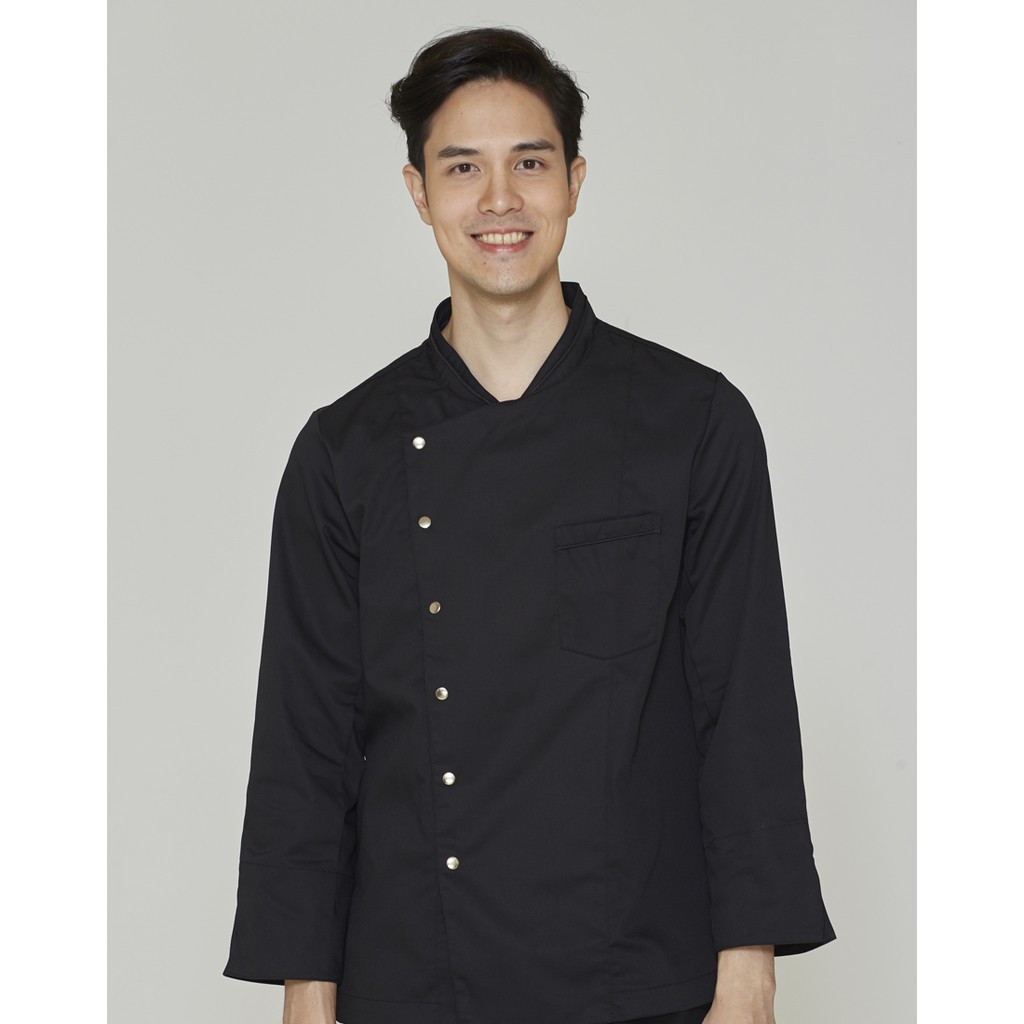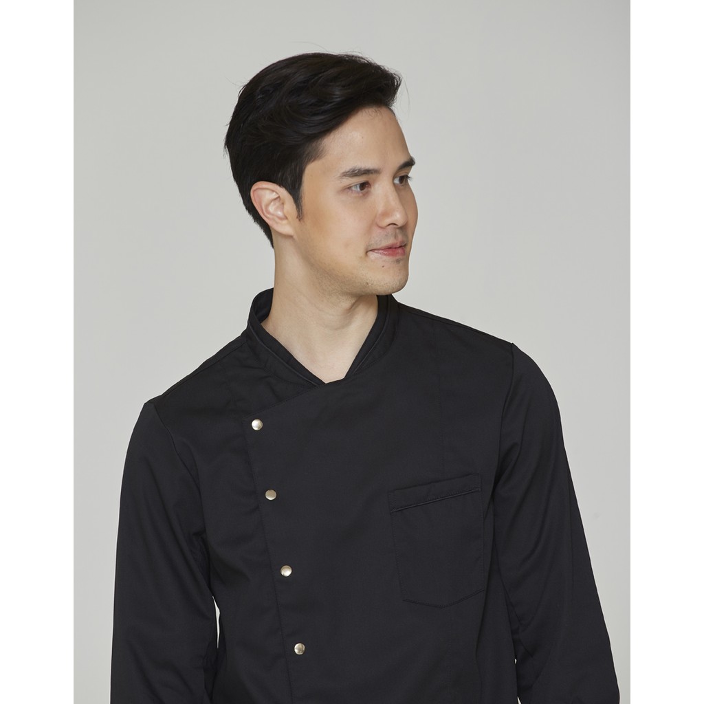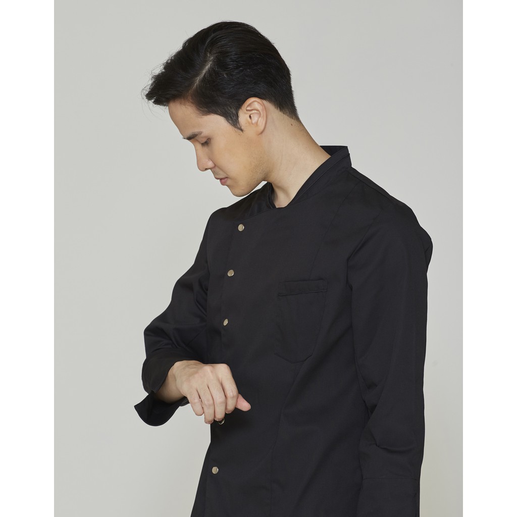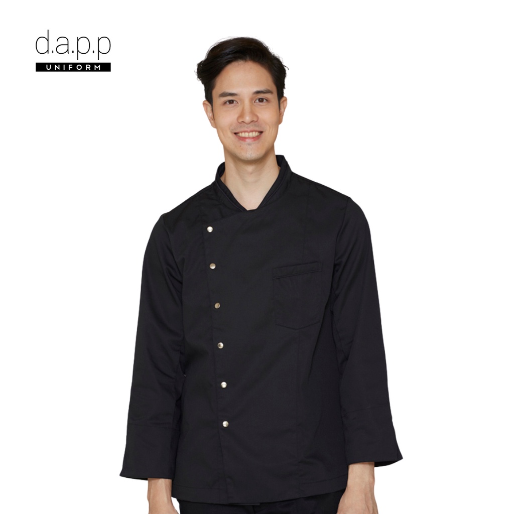dapp Uniform เสื้อเชฟ จอนนี่ แขนยาว Johnny Black Longsleeves Chef Jacket with Press Buttons สีดำ(TJKB1010)
