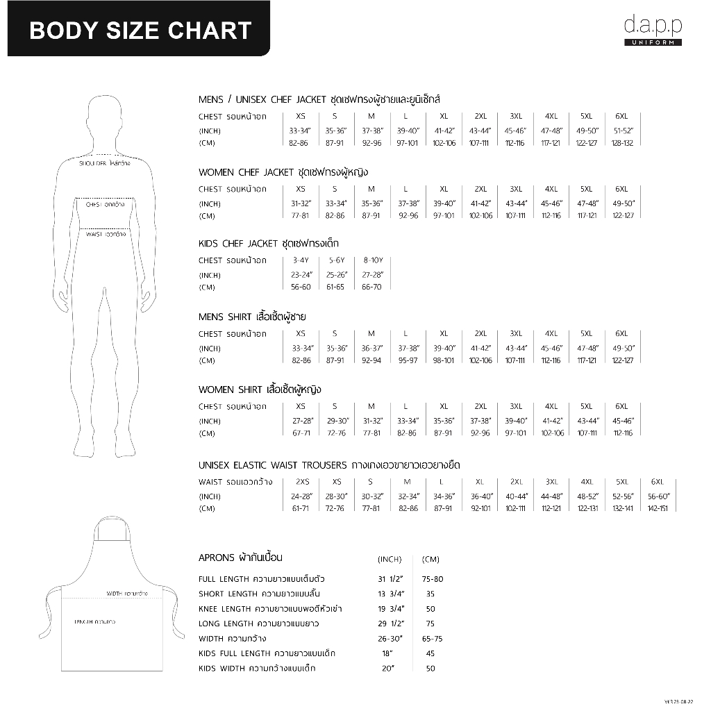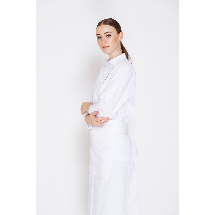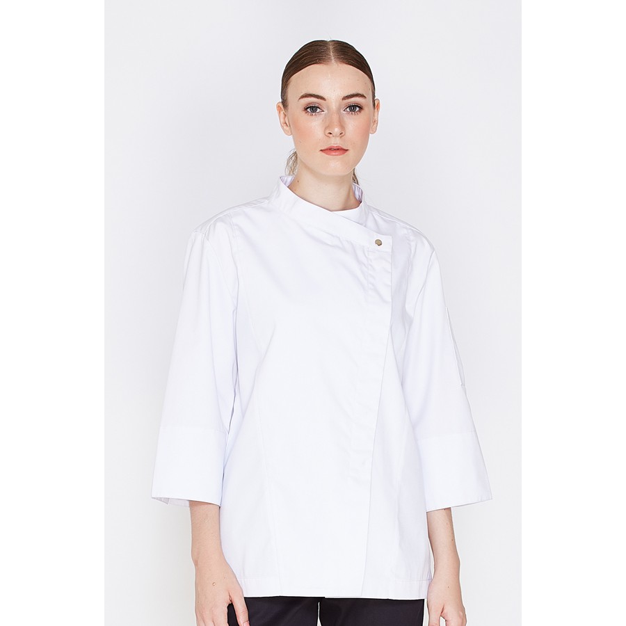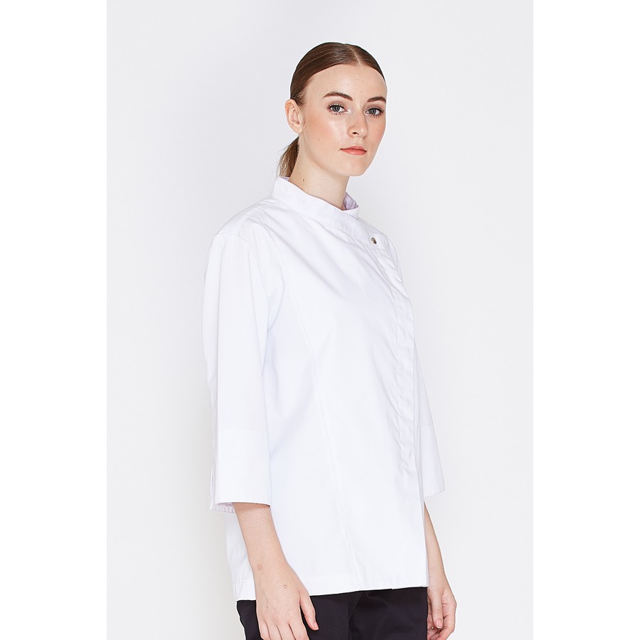 dapp Uniform เสื้อเชฟ เข้ารูป แขนสามส่วน Jane White Chef Jacket with Press Buttons สีขาว(TJKW1015)