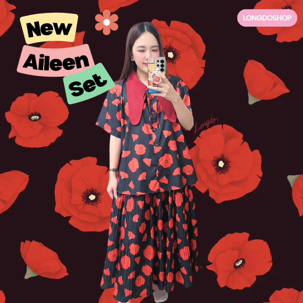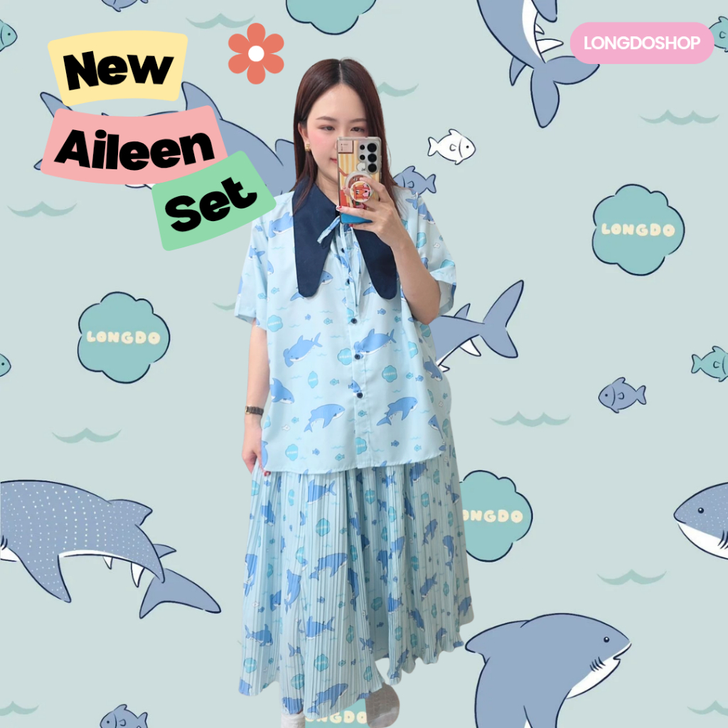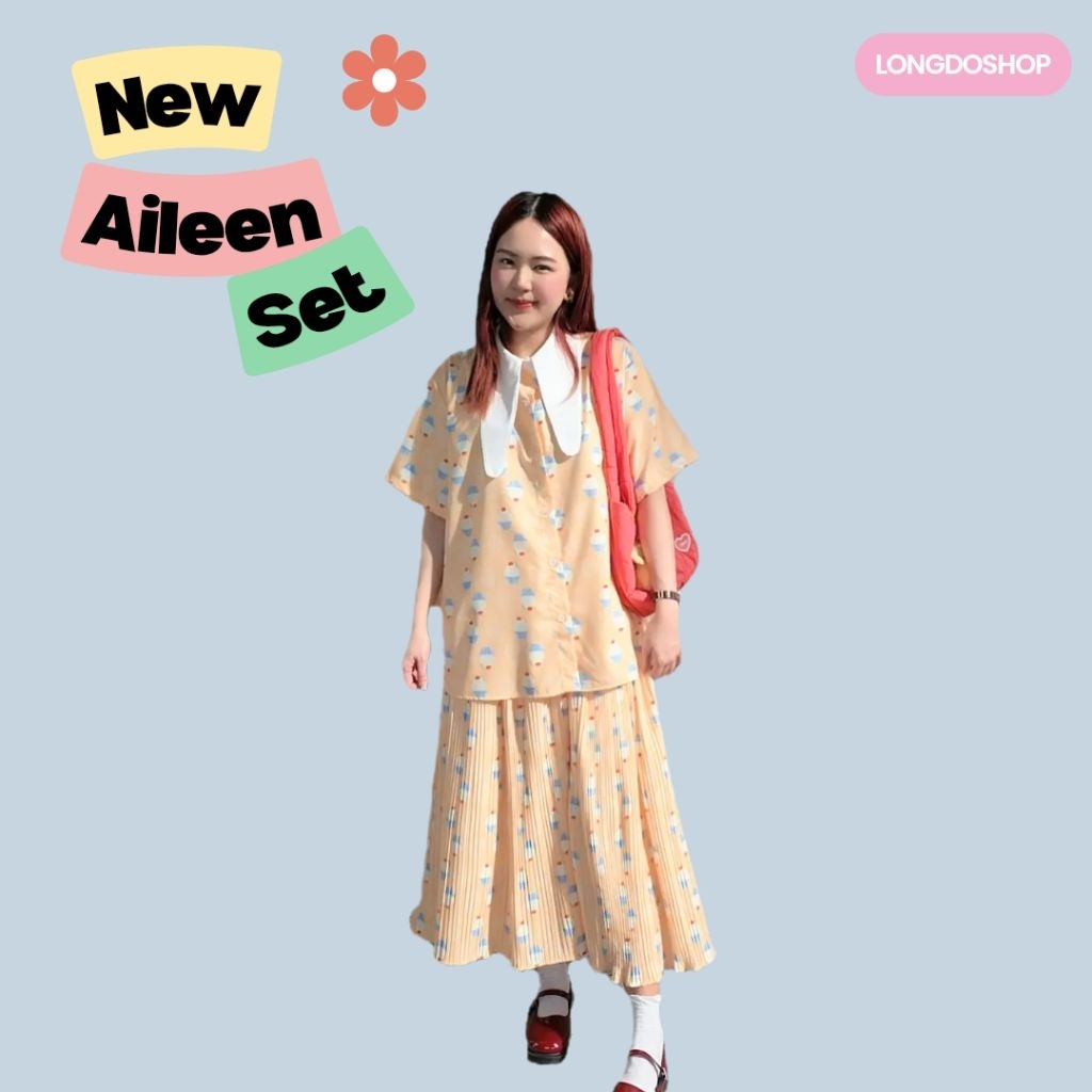 Longdopaws : Aileen set ชุดเซ็ทเสื้อคอบันนี่+กระโปรงยาวอัดพลีทใส่สบายมีซับใน