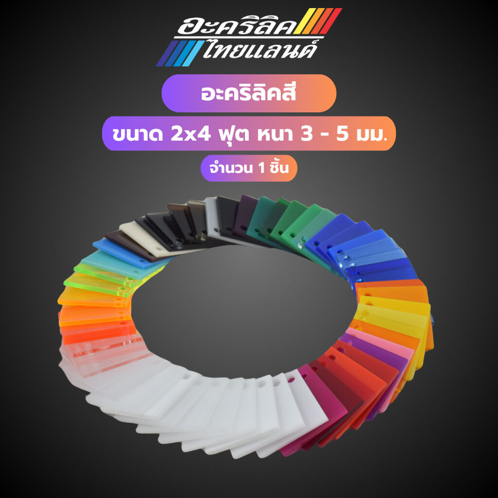แผ่นอะคริลิคสี 2x4 ฟุต หนา 3 - 5 มม. 👍 จำนวน 1 ชิ้น