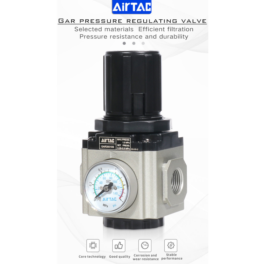 Airtac GAR200-06/08/300-10/400-15/600-25S Air แหล่งความดันวาล์วหมุนเวียนนิวเมติกวาล์วลดความดัน