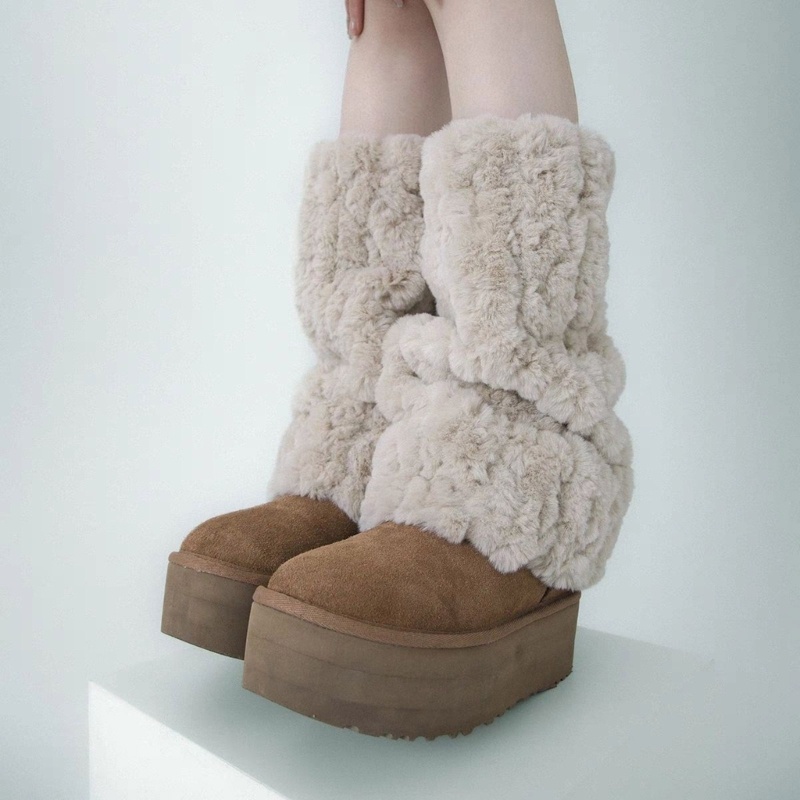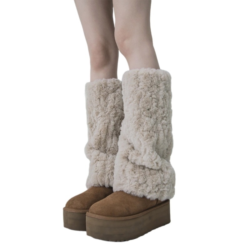 Yaa ผู้หญิงขนสัตว์ขาอุ่นขนสัตว์ Furry Fuzzy ขาครอบคลุม Boot ฤดูหนาว Boot Cuffs ฝาครอบ