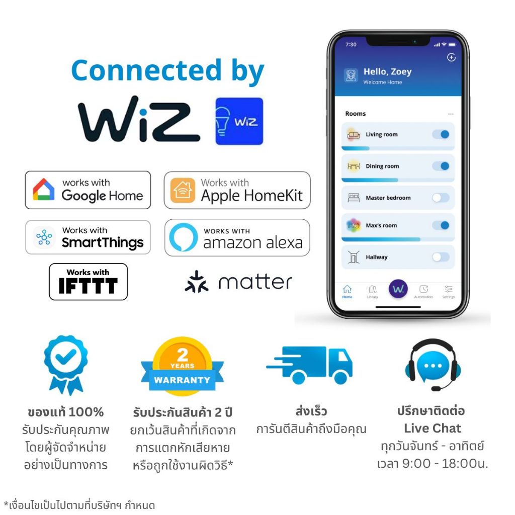 WiZ ไฟเส้นเปลี่ยนสีอัจฉริยะ WiZ RGBIC (เซทได้หลายสีในเส้น) ขนาด 5 เมตร/10 เมตร ตัดได้ ต่อไม่ได้