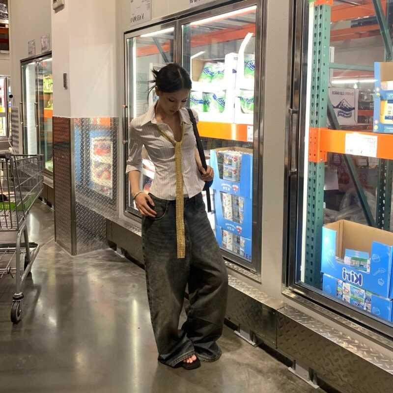QWEEK D25 ลาย Vintage Gyaru บางเสื้อสั้นสไตล์เกาหลีเสื้อ Y2k St