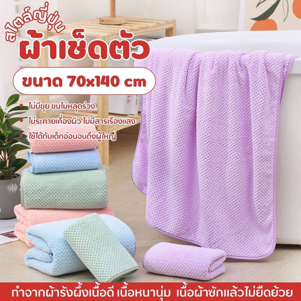 ผ้าเช็ดตัวรังผึ้ง ผ้าขนหนูอาบน้ำ ผ้าเช็ดตัวขนนุ่ม ซับน้ำดี ผืนใหญ่ห่อตัวได้ ผ้านุ่มไม่บาดผิว มีหลายสี ขนาด140x70cm