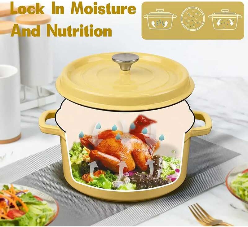 4.7L เคลือบอลูมิเนียมหล่อพร้อมฝาปิดเตาอบสไตล์ดัตช์