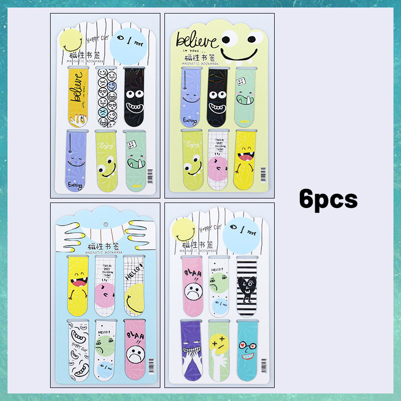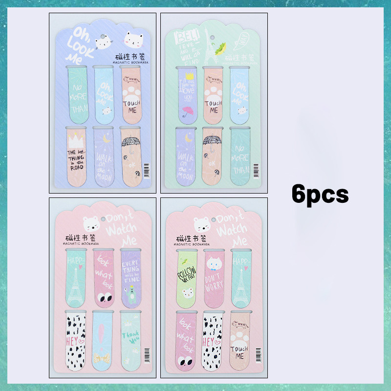6 ชิ้นสร้างสรรค์การ์ตูนรูปร่างพิเศษชุดแม่เหล็กบุ๊คมาร์คนักเรียนมินิหนังสือหน้า เครื่องผูก