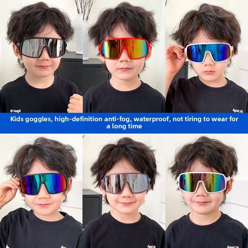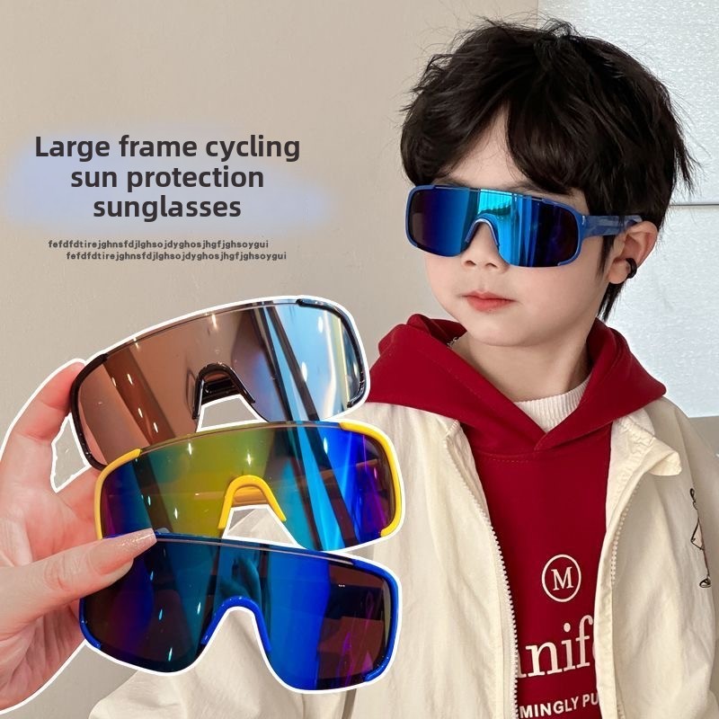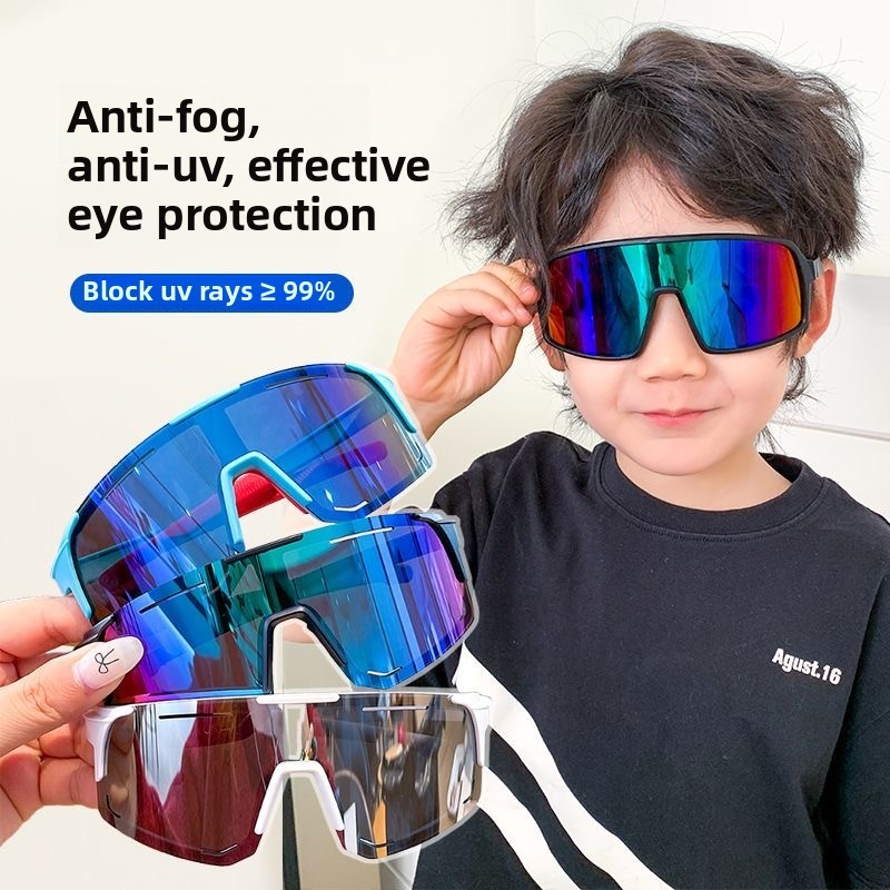 ยูวี>99ป้องกันรังสีอัลตราไวโอเลตขี่จักรยานเด็กแว่นกันแดดสําหรับเด็กชายและเด็กหญิงกรอบสี่เหลี่ยมขนาดใหญ่แว่นกันแดดกันลมแว่นตาขี่จักรยานกลางแจ้งเด็กแว่น 3-12 ป