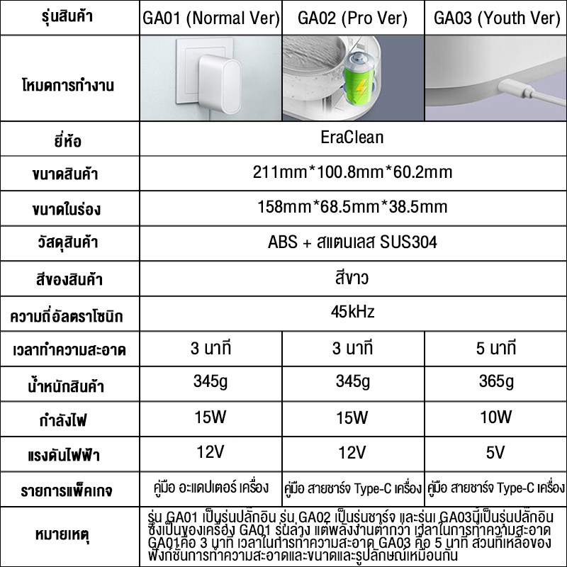 EraClean Washing Machine เครื่องล้างอัลตราโซนิก เครื่องล้างแว่นตา Ultrasonic Cleaner ทำความสะอาดสามนาที