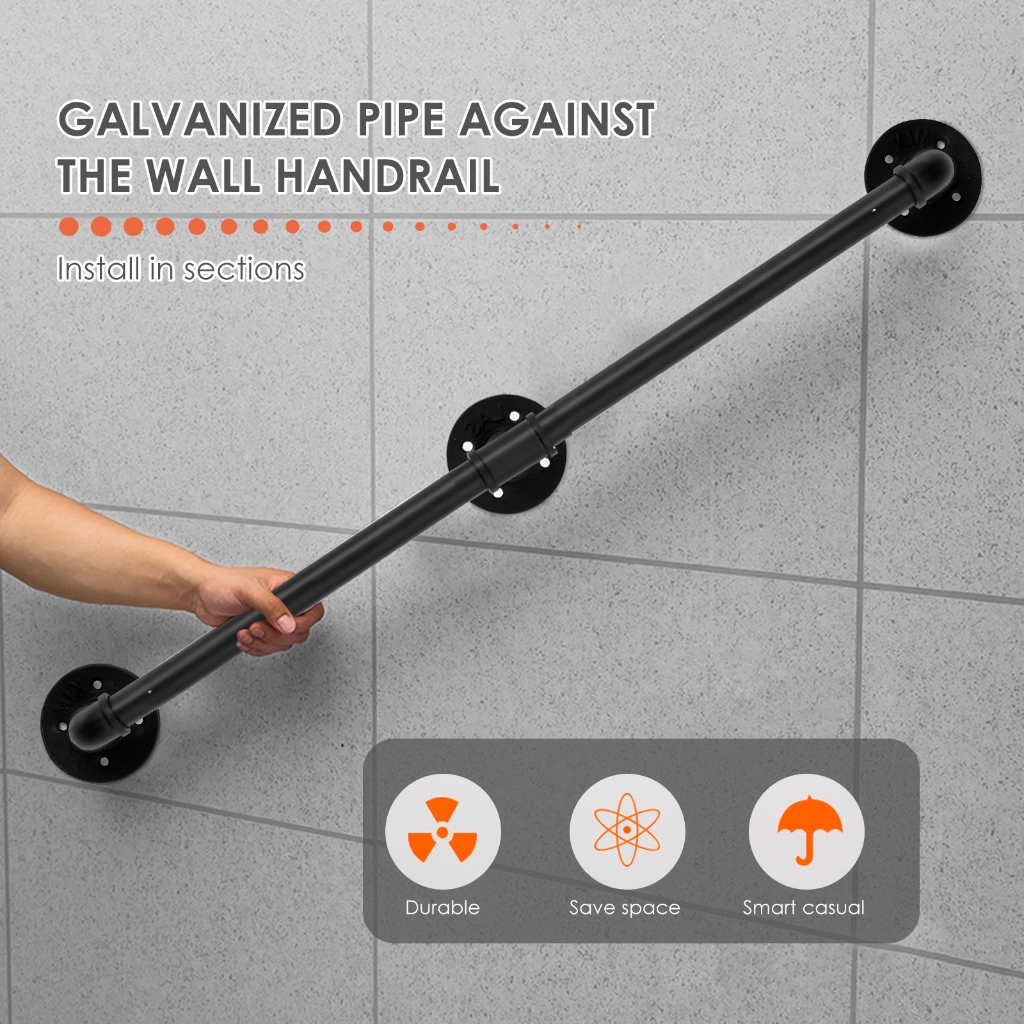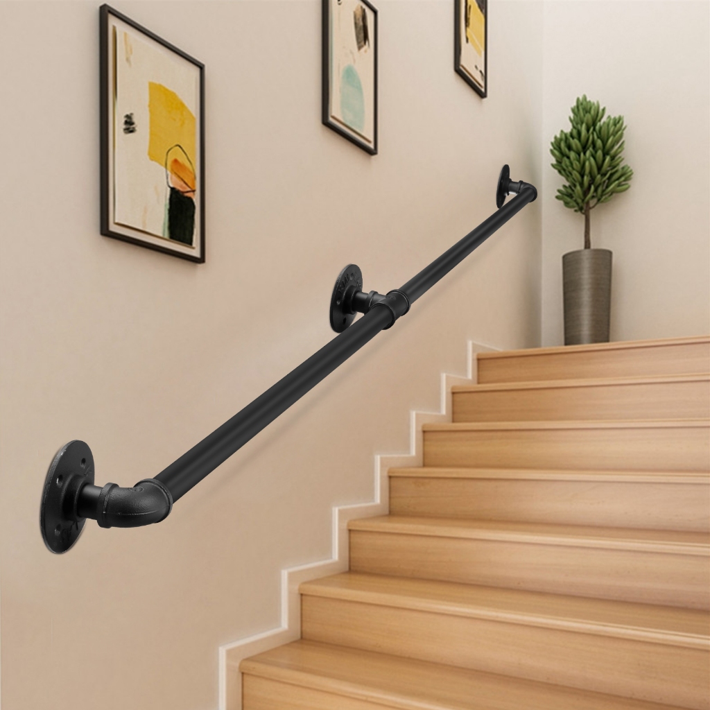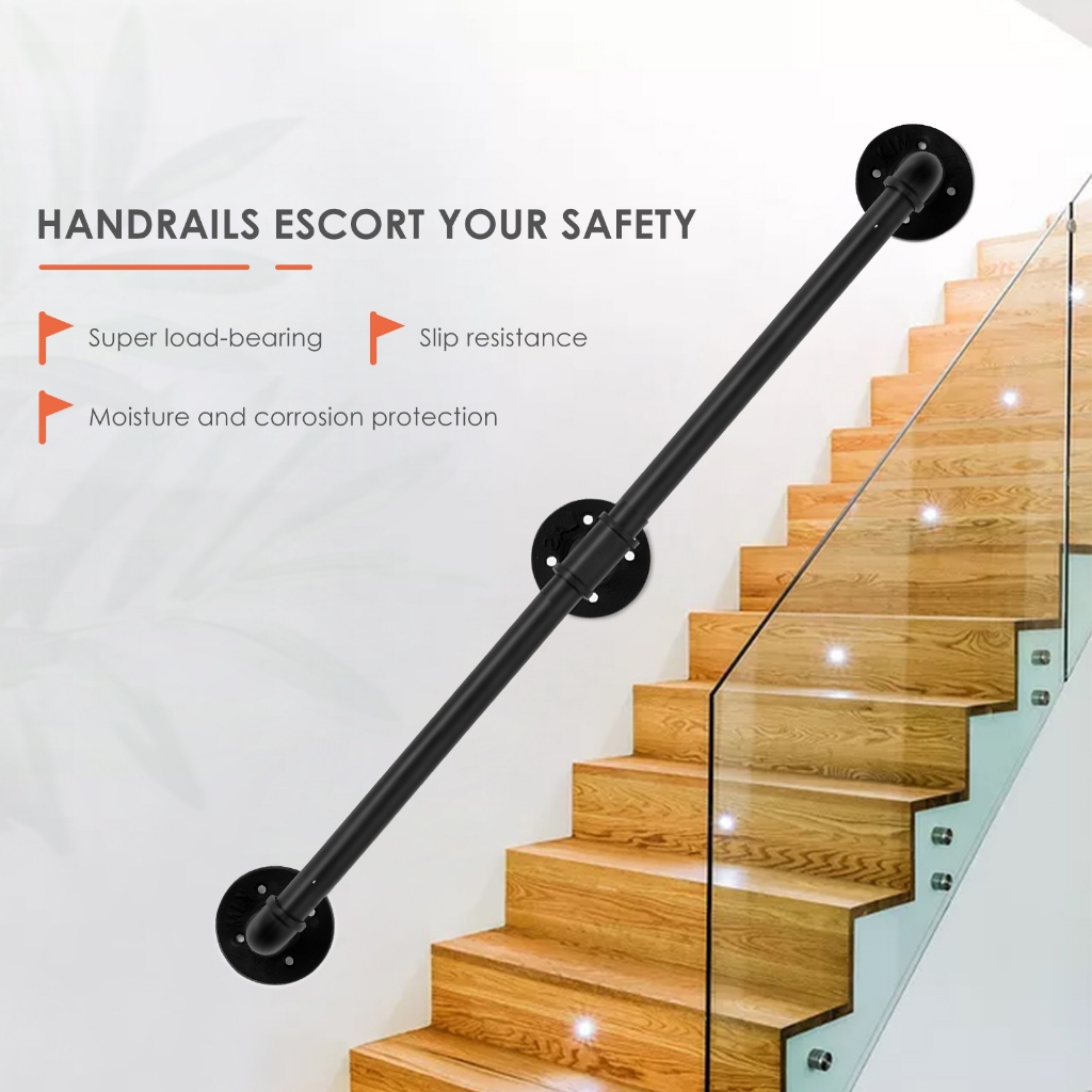 LOCAL Handrail For Indoor Stair Black Metal Railing Non-Slip Grab Bar Industrial Galvanized Steel Pipe 1.5M/2M/3M