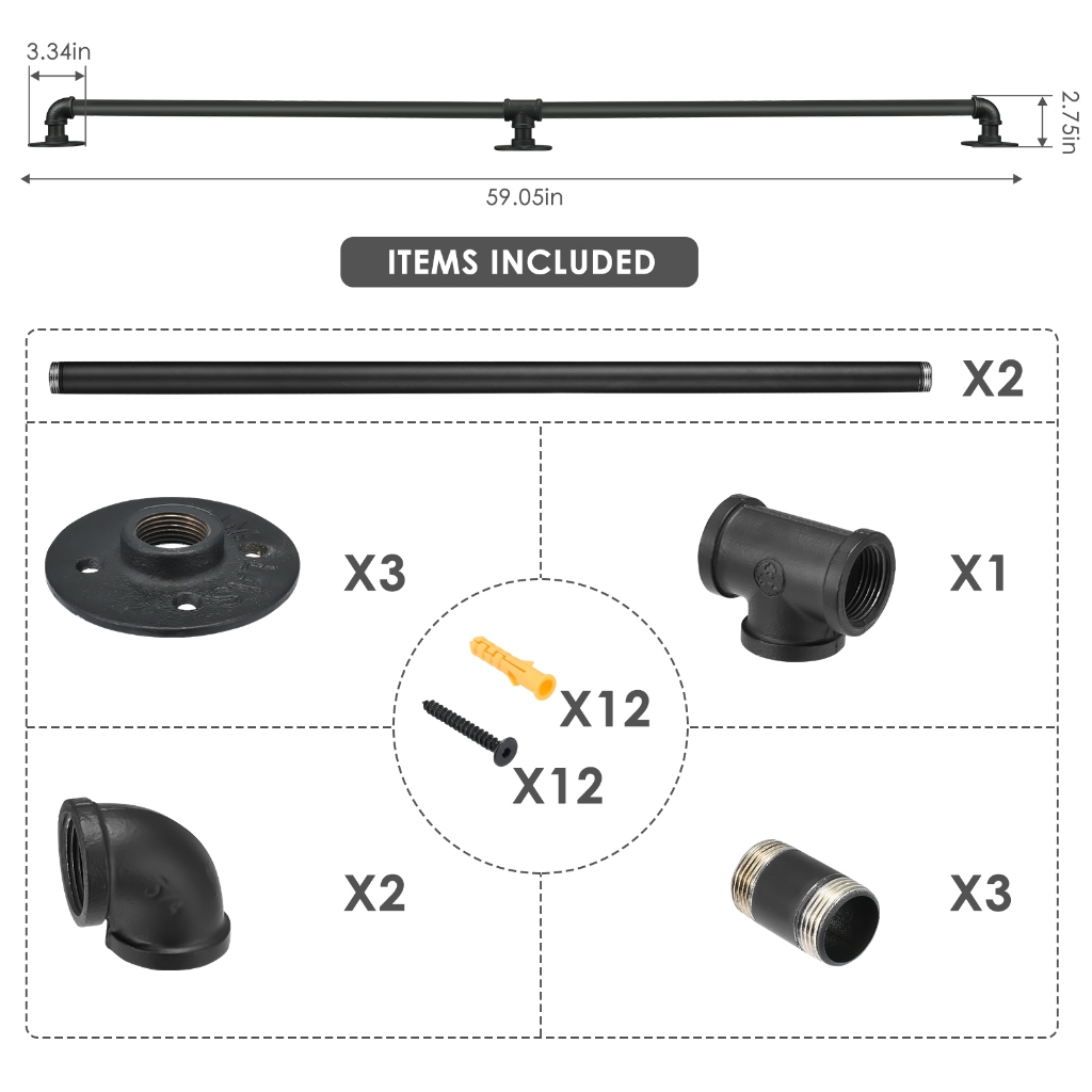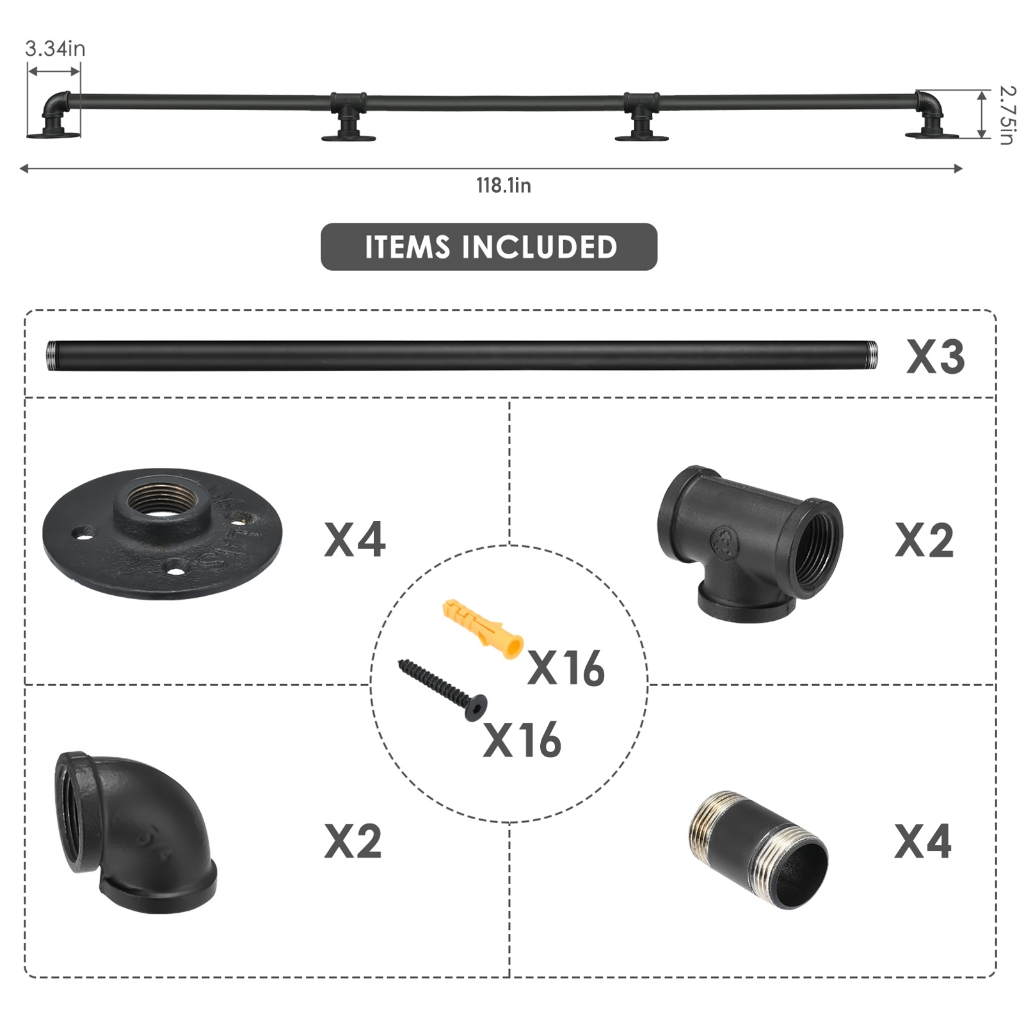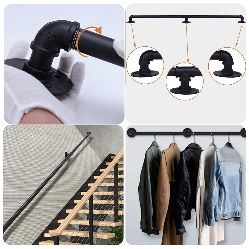 LOCAL Handrail For Indoor Stair Black Metal Railing Non-Slip Grab Bar Industrial Galvanized Steel Pipe 1.5M/2M/3M