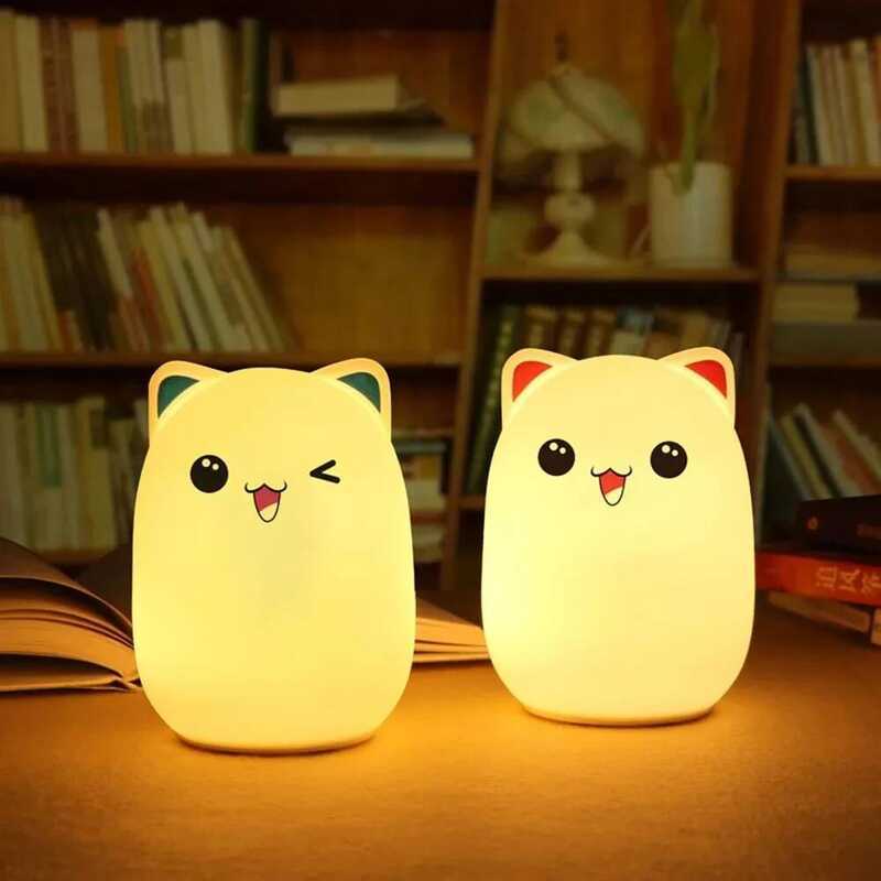 C Bear LED Night Light Touch Sensor Remote Control RGB Dimmable USB Rechargeable Cartoon Silicone D