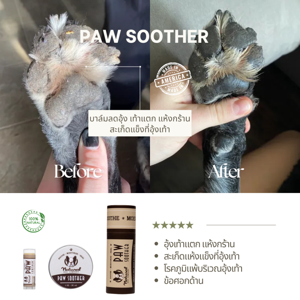 Paw Soother บาล์มดูแลอุ้งเท้าสุนัข ขนาด 59.15ml ฟื้นฟูอุ้งเท้าแห้งแตกให้นุ่ม ปลอดภัย ออร์แกนิกแท้ | Natural Dog Company