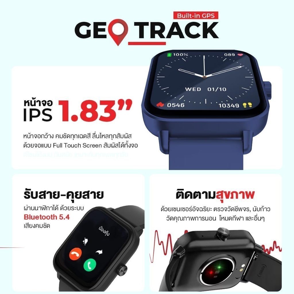 [GPS] สมาร์ทวอทช์ Aston GEO Track GPS Built-in แทรคระยะได้ ไม่ง้อโทรศัพท์ Smartwatch นาฬิกามี GPS ในตัว รับประกัน 1 ปี
