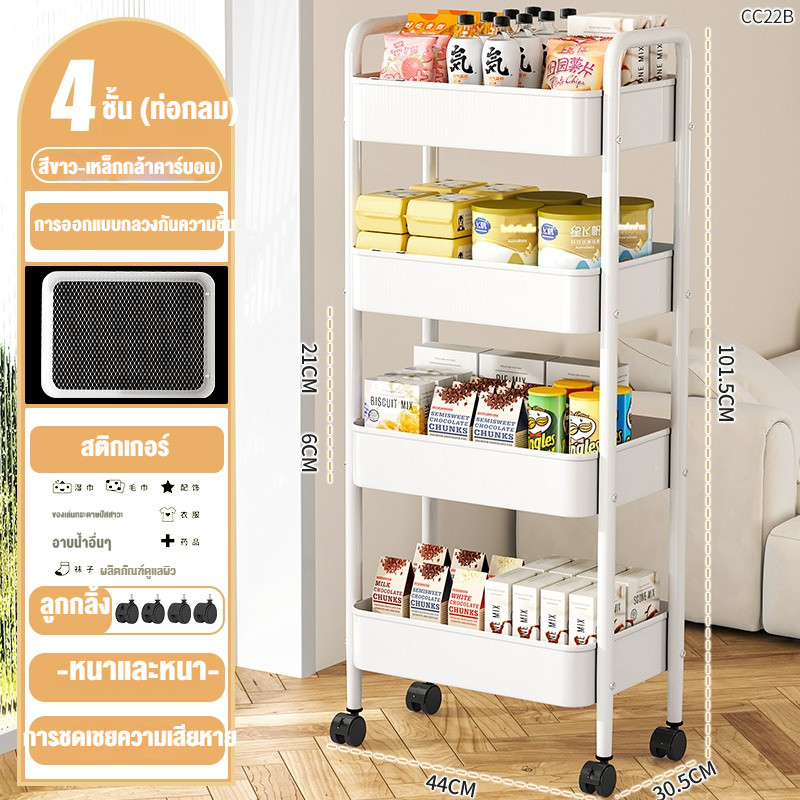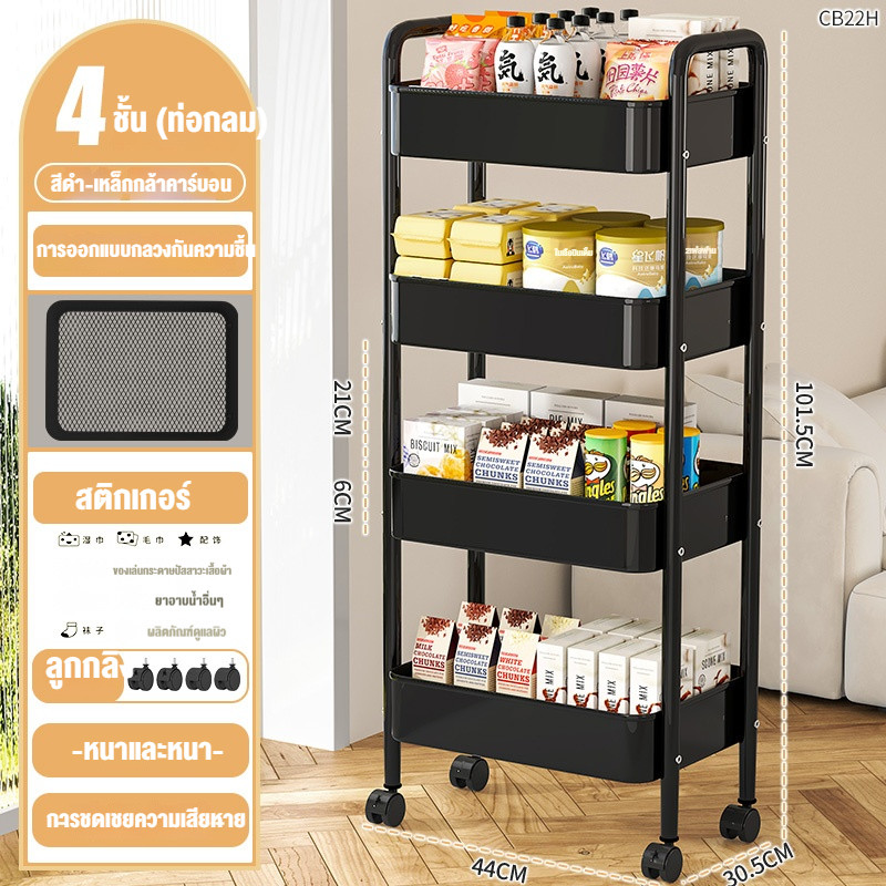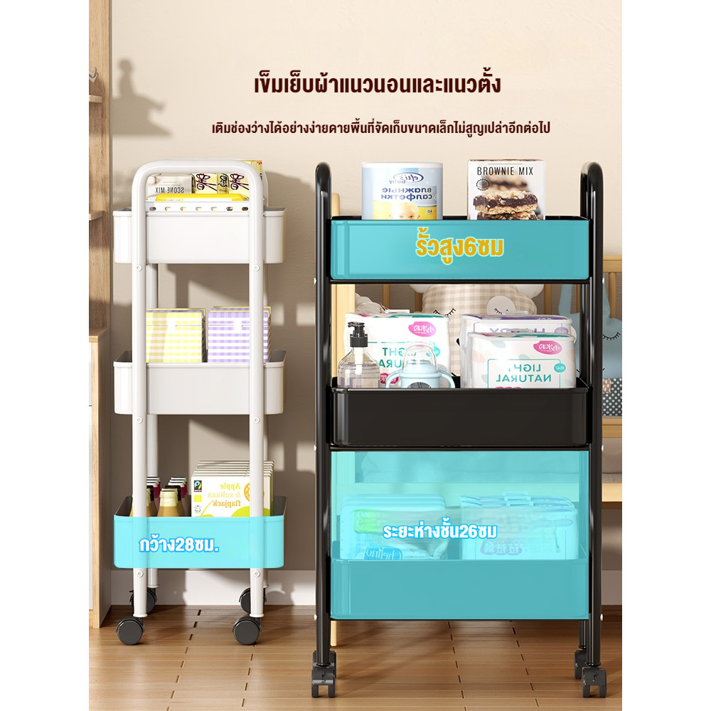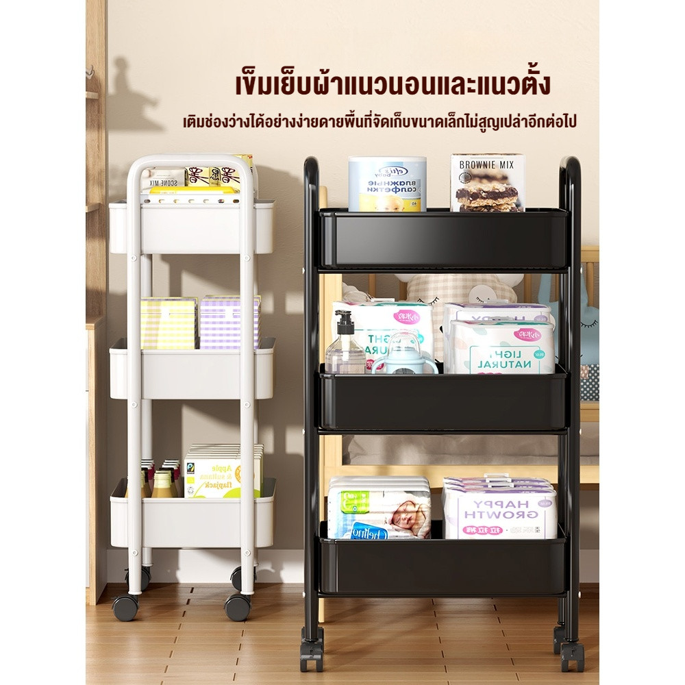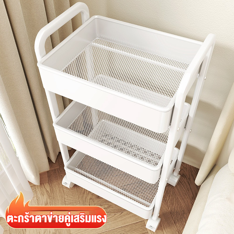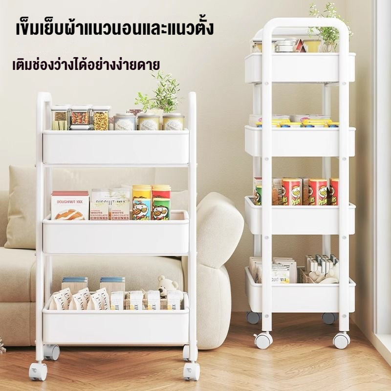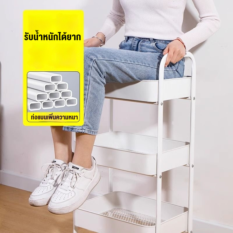 รถเข็น ชั้นวางของเหล็ก ชั้นวางของมีล้อ 3/4ชั้น แข็งแรงกันสนิม พร้อมล้อเลื่อน+ที่จับ เคลื่อนย้ายสะดวก
