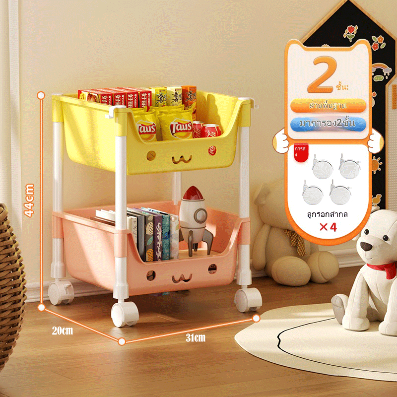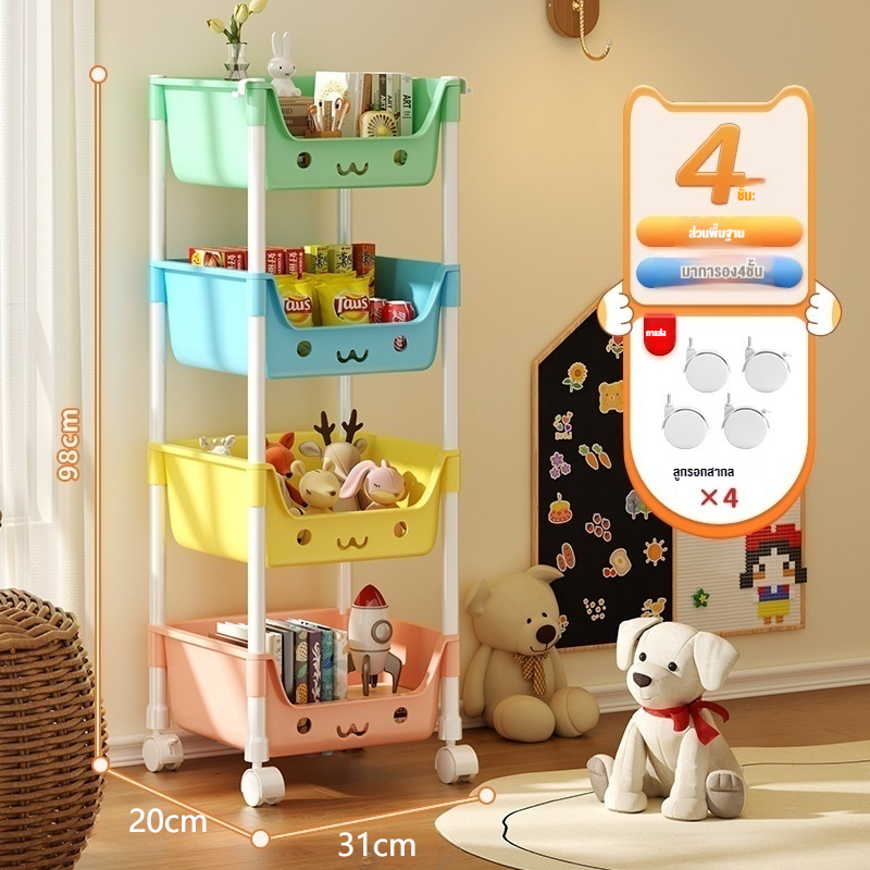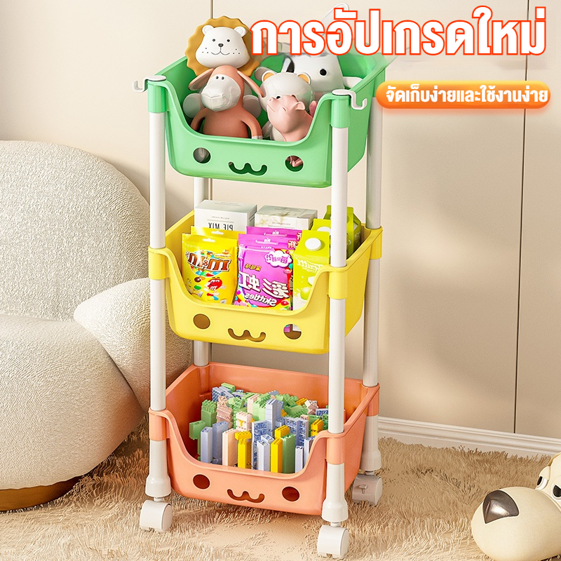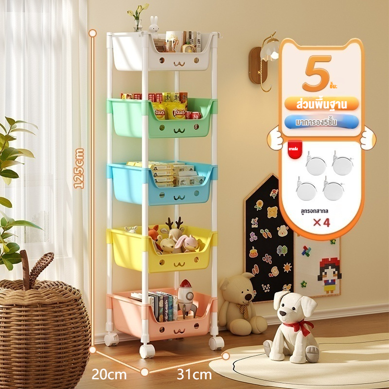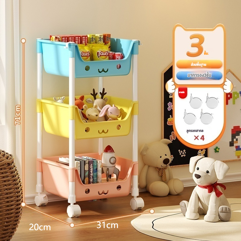 [ชั้นการ์ตูนน่ารัก] ชั้นวางของเล่น สีพาทเทลมีล้อหมุนได้ 360 องศา ความจุสูง ชั้นวางอเนกประสงค์