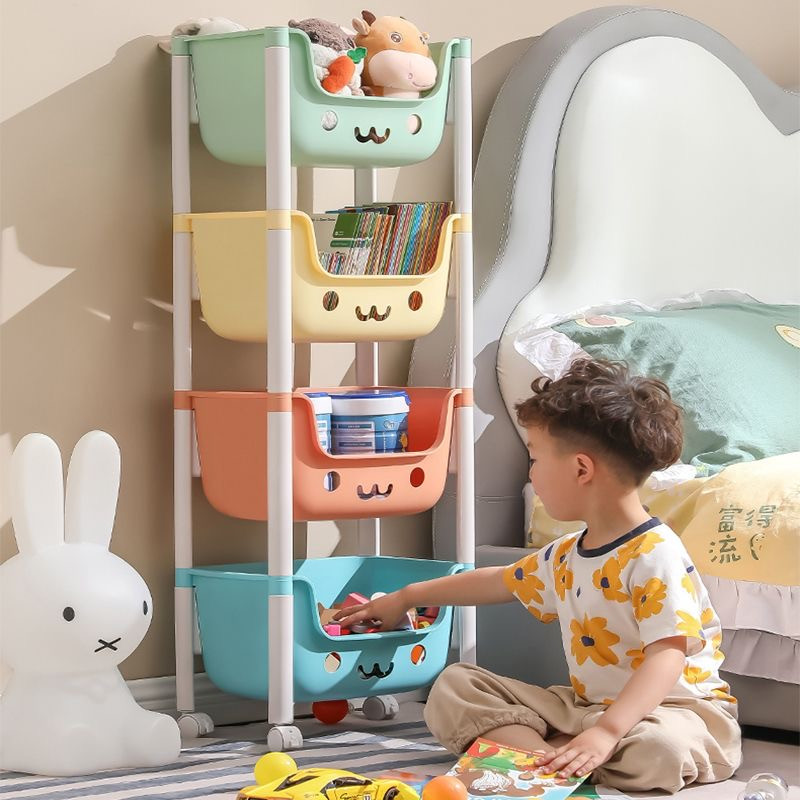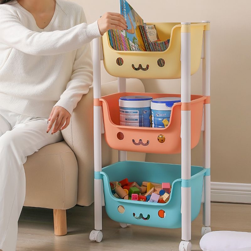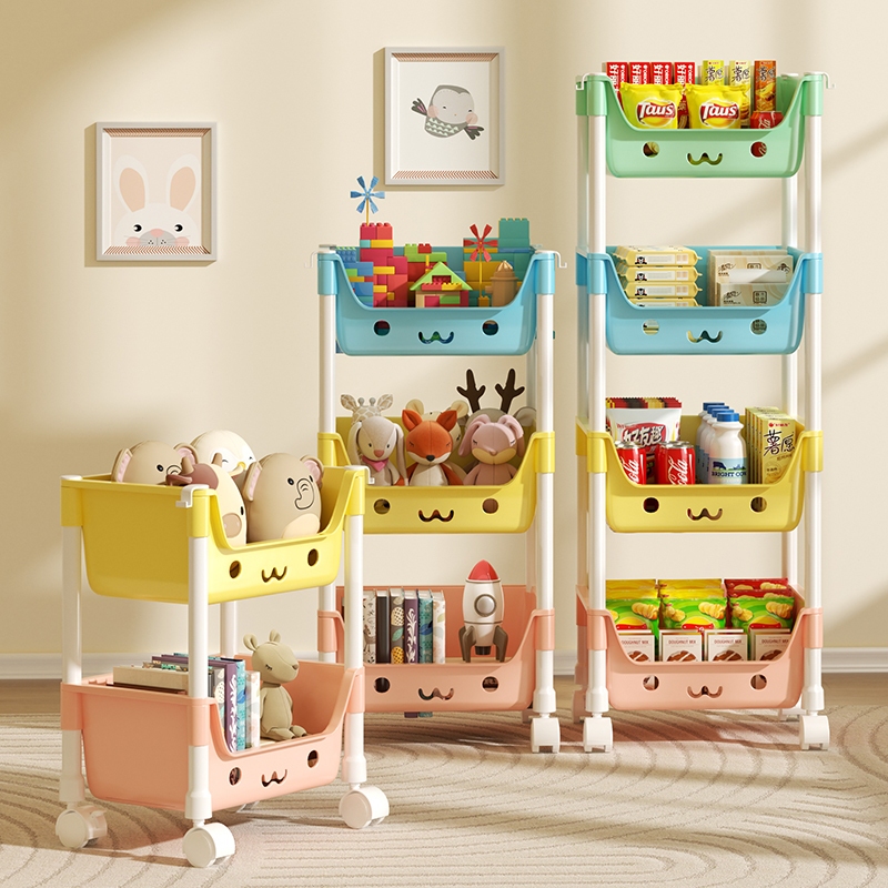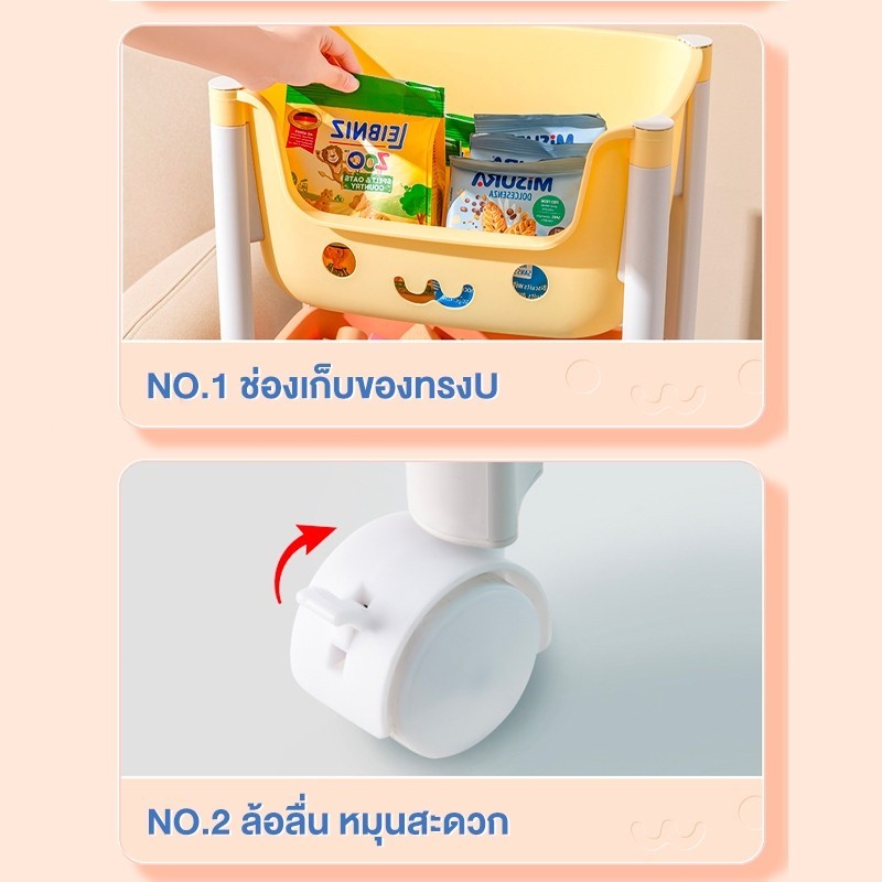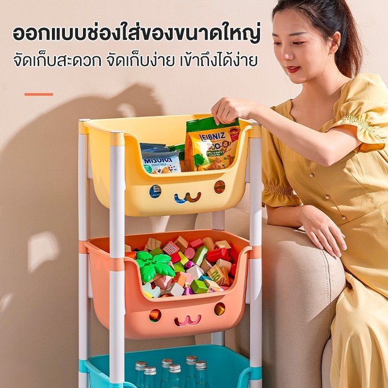 [ชั้นการ์ตูนน่ารัก] ชั้นวางของเล่น สีพาทเทลมีล้อหมุนได้ 360 องศา ความจุสูง ชั้นวางอเนกประสงค์