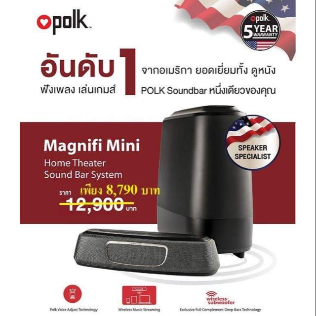 ซาวด์บาร์ SOUND BAR POLK AUDIO MAGNIFI MINI ประกันศูนย์ไทย 5 ปี (ของใหม่มือ 1)