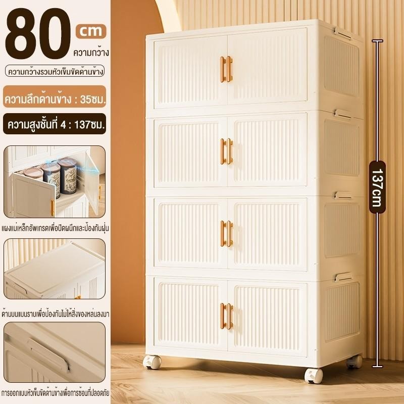 ME ตู้เก็บของ【80cm】 ตู้เก็บของขนาดใหญ่ ตู้เก็บของพลาสติก แข็งแรงทนทาน กันฝุ่นและกันน้ำ พร้อมล้อเลื่อน ติดตั้งง่าย