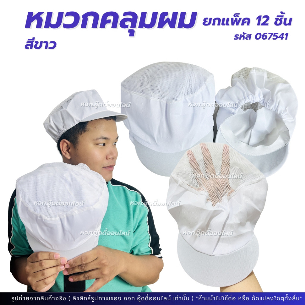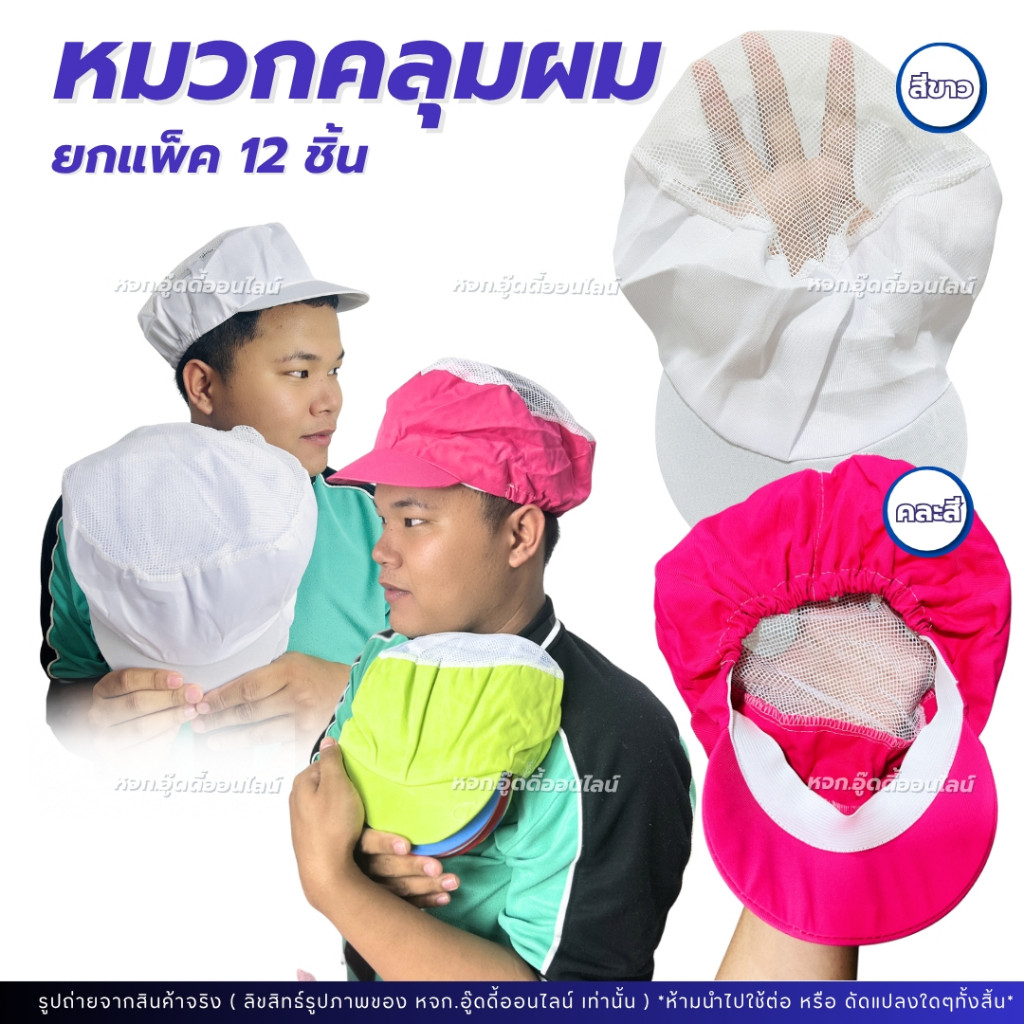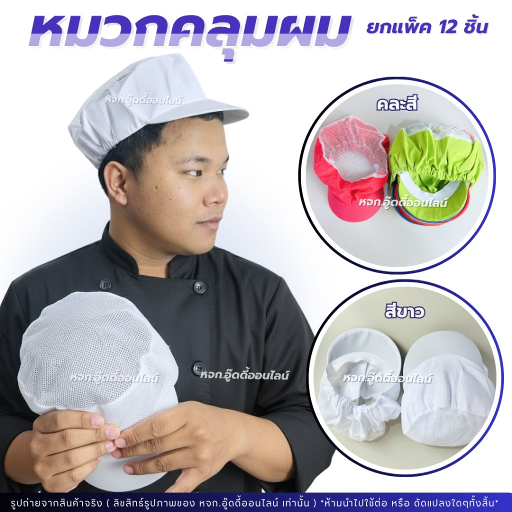 หมวกแม่ค้า หมวกใส่ทำอาหาร หมวกคลุมผม ขนาดฟรีไซส์ มี2ตัวเลือก มีตาข่ายระบายอากาศ ยกโหล ใช้ซ้ำได้